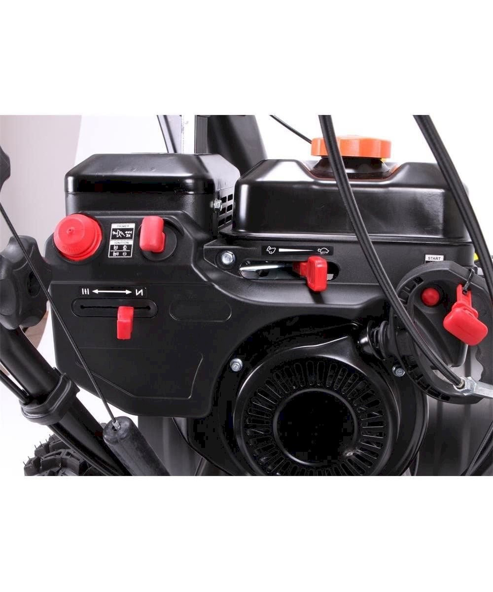 - La souffleuse à neige a une cylindrée de 210cm3, développe une puissance de 7,5 cv max. et est dotée d'un démarreur électrique.