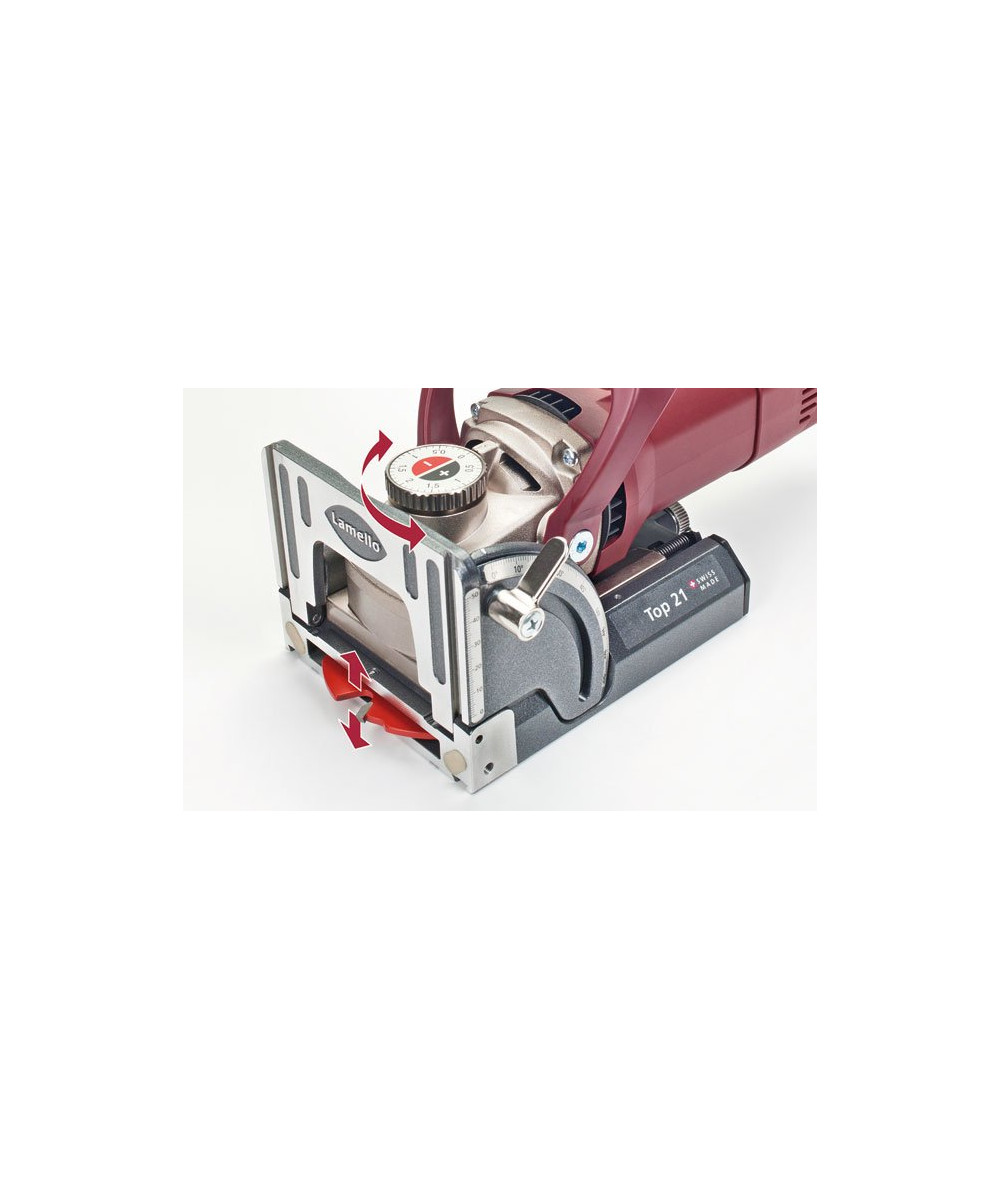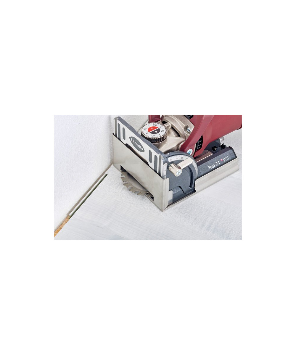 Top 21 ist die Nutfräsmaschine mit höhenverstellbarem Fräser vom Erfinder des Lamello System für die Herstellung der 4 mm Nut. Die einzigartige Höhenverstellung des Fräsers in Stufen von 0.1 mm bis max. 4 mm erlaubt es, die Nut in die Mitte der Materialdicke zu positionieren. Präzision in allen Bauteilen erlaubt perfekte Passgenauigkeit der Werkstücke und spart Zeit.