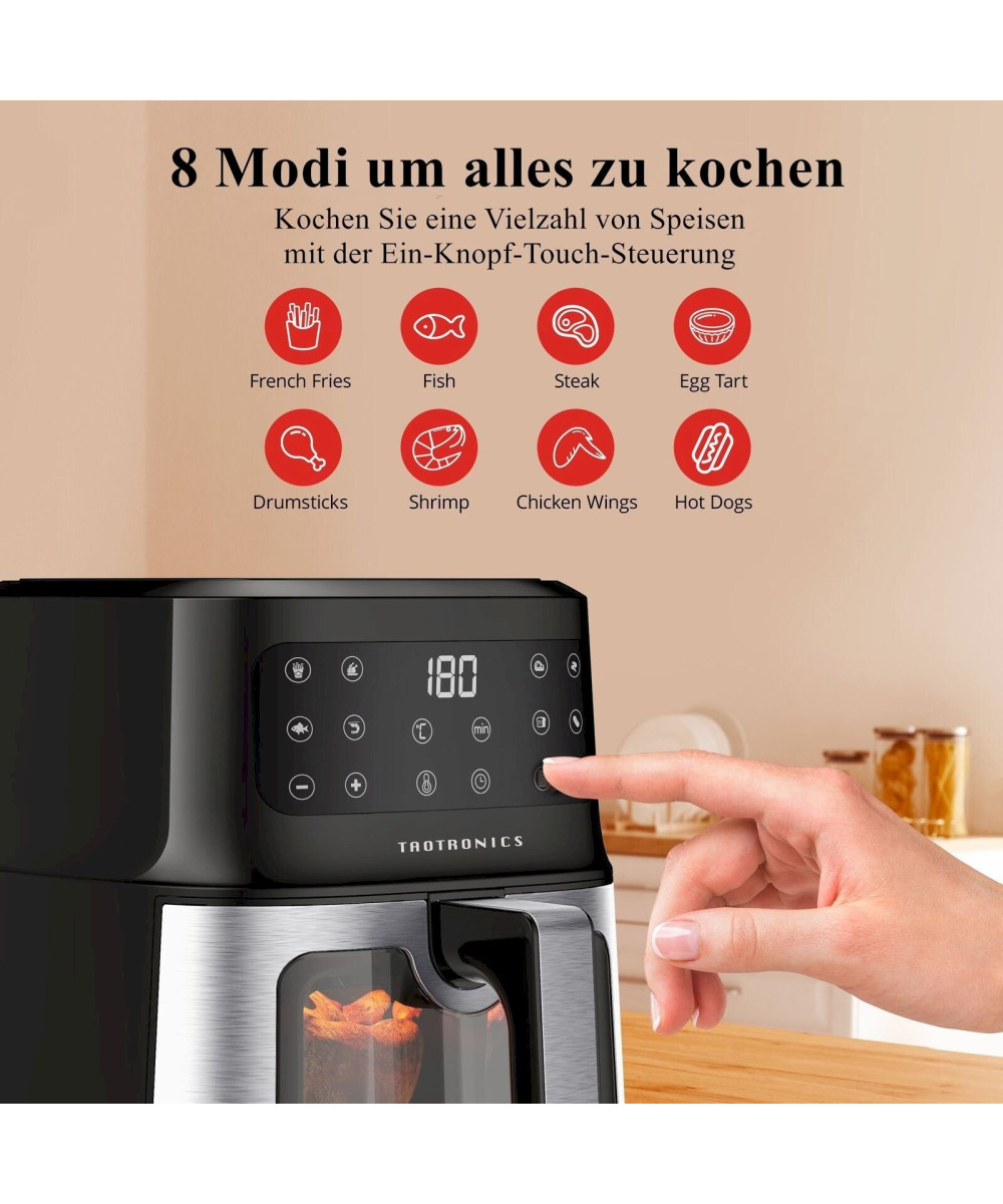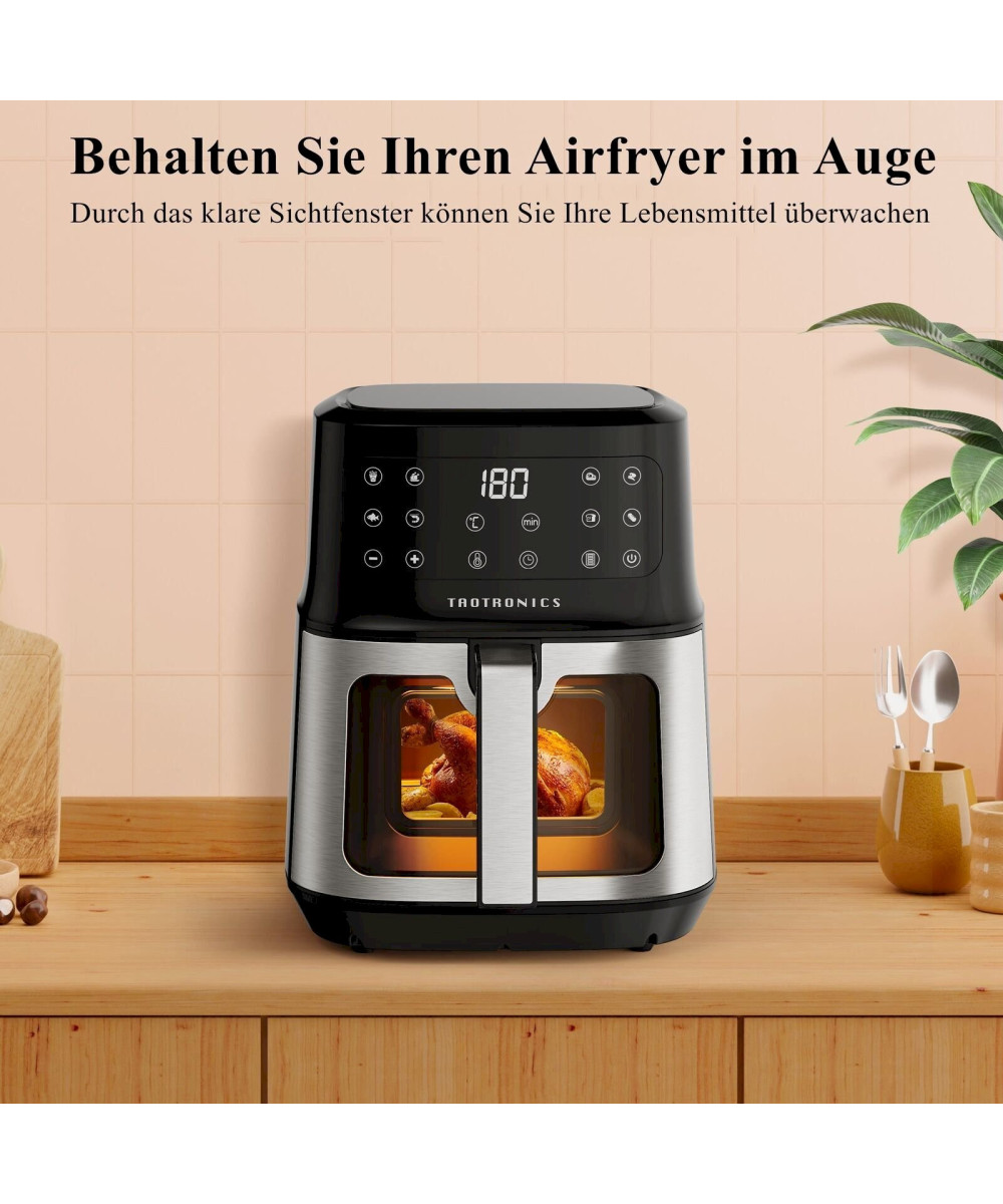 TaoTronics Heißluftfritteuse 5l Digital Edelstahl Sichtfenster 1200W