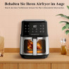 - 360° gleichmäßige Luftzirkulation: Ausgestattet mit einer fortschrittlichen Heiztechnologie, die die Luft um 360° zirkulieren lässt, sorgt die Fritteuse dafür, dass die Speisen knusprig und goldbraun werden, während das Innere der Speisen gleichmäßig gegart wird.