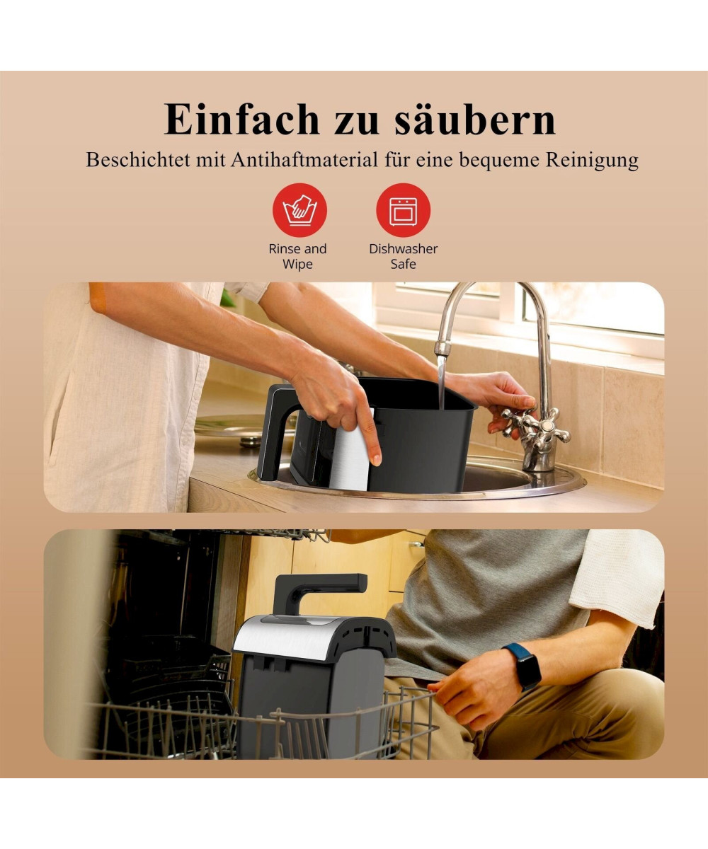 - Schnell zu reinigen: Dank der Antihaftbeschichtung und des kratzfesten Materials lassen sich der Frittierkorb und der abnehmbare Frittiereinsatz schnell und bequem abwaschen oder in der Spülmaschine reinigen.