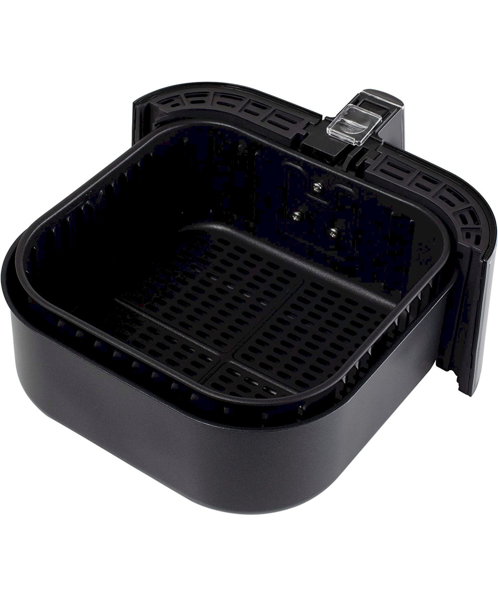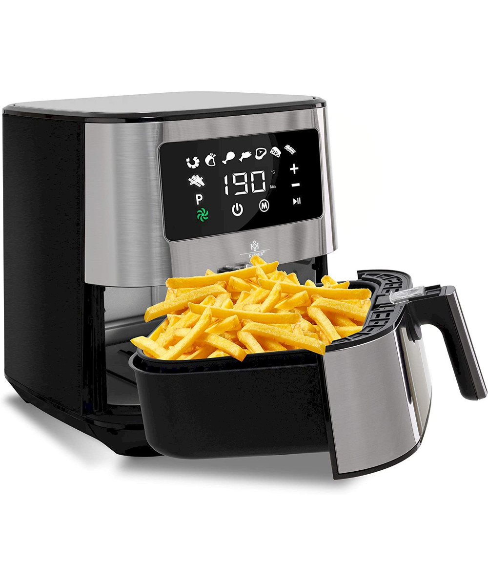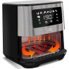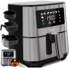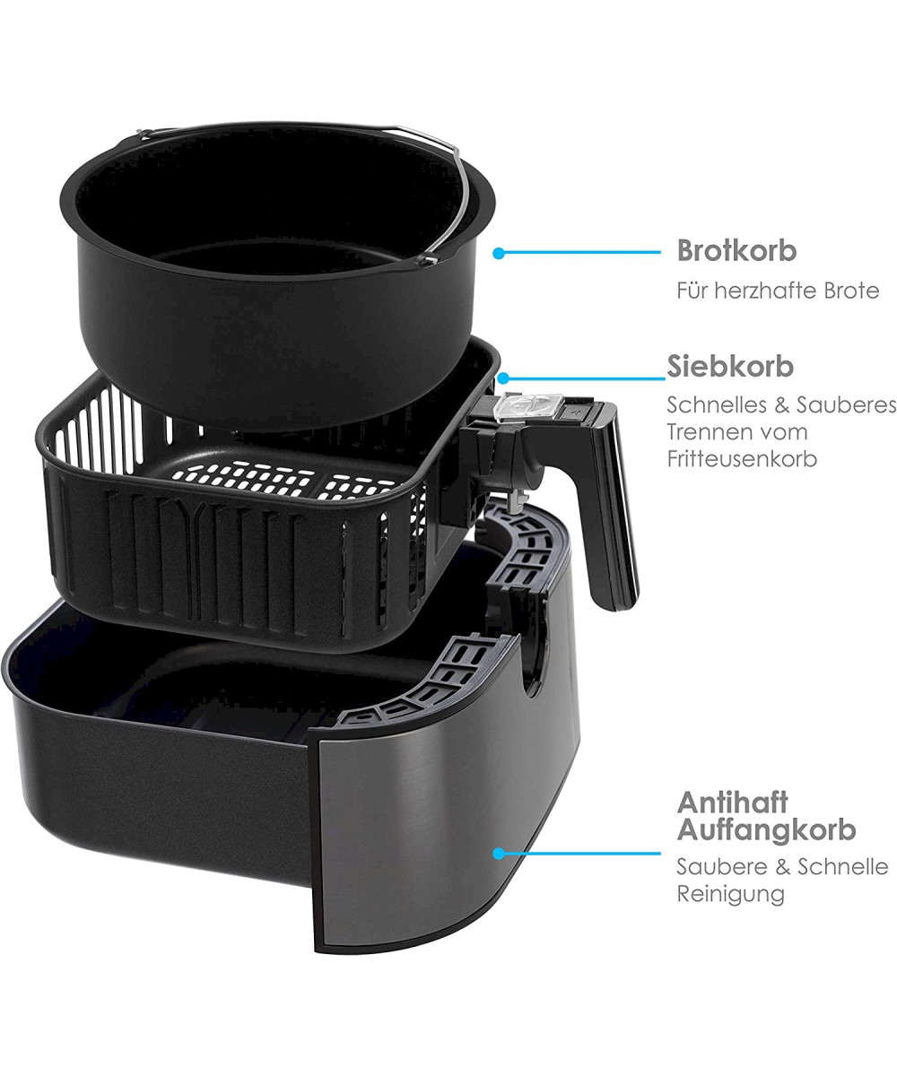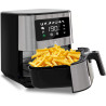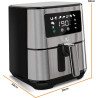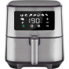 Puissance : Friteuse à air chaud 1700 W en acier inoxydable - Température : 80-200 °C - Minuterie : 0 à 60 minutes de capacité de 5,5 litres - Écran tactile - 8 programmes de cuisson préréglés avec panier à pain - Poignées Cool Touch - Filtre à air pour prévenir la formation d'odeurs