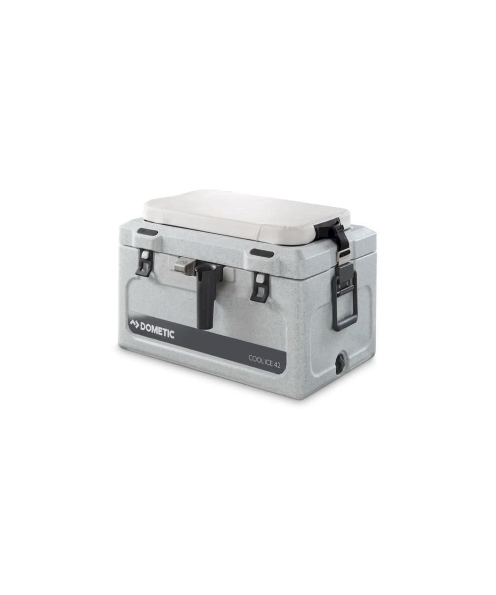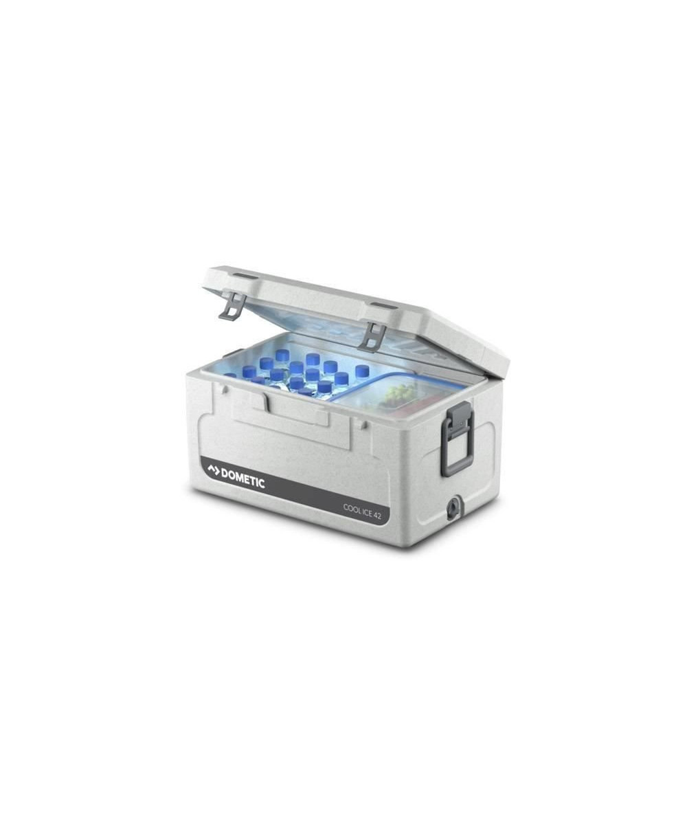 La glacière passive et durable Cool-Ice CI-42 de Dometic est extrêmement bien isolée. Une fois les accumulateurs de froid ou les glaçons en place dans la glacière. ils conservent vos provisions. poissons. appâts et gibier au frais. Et ce. même pendant plusieurs jours selon l’utilisation et les conditions météorologiques ! La glacière est livrée avec une évacuation d’eau pratique et des points d’arrimage intégrés.