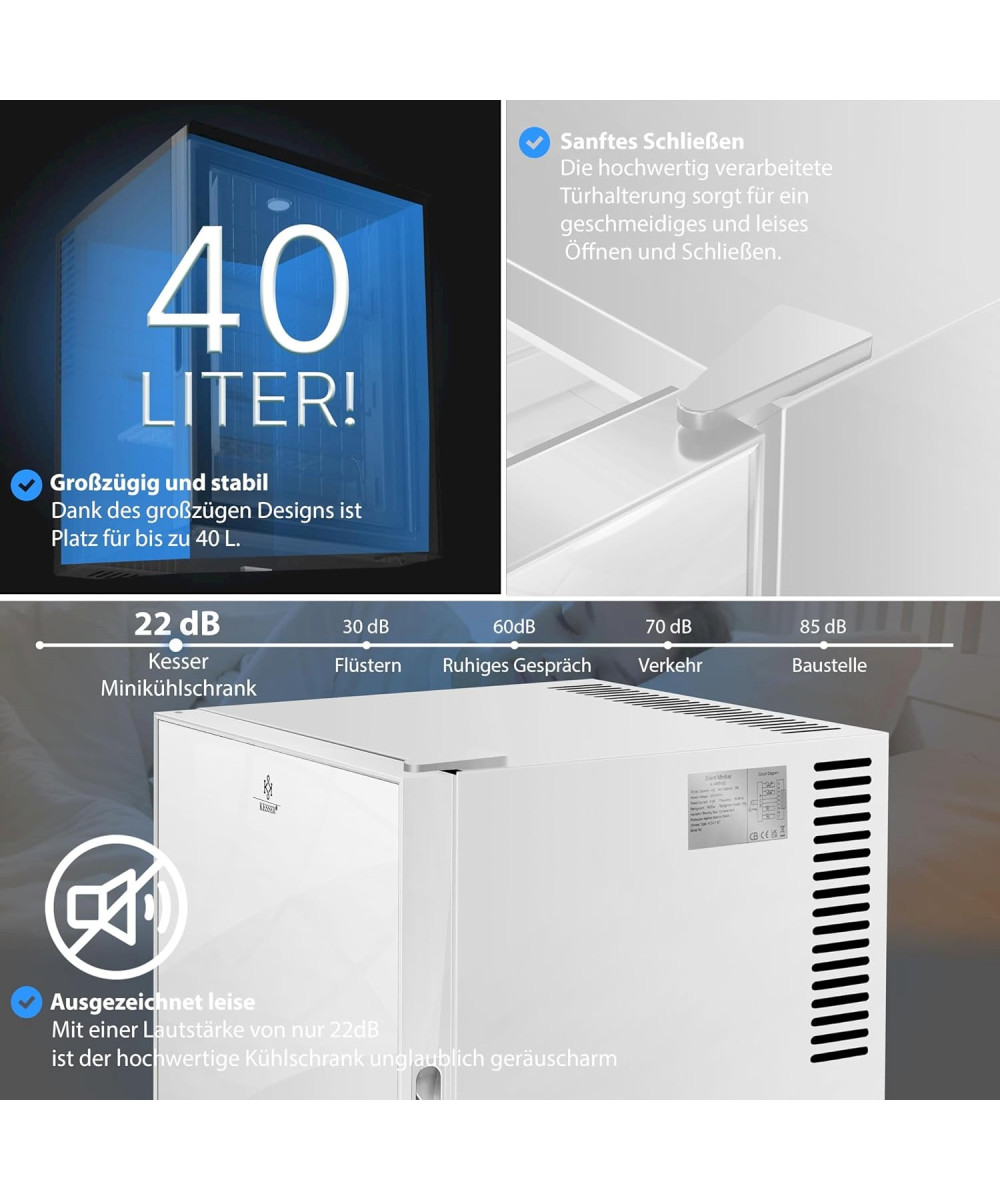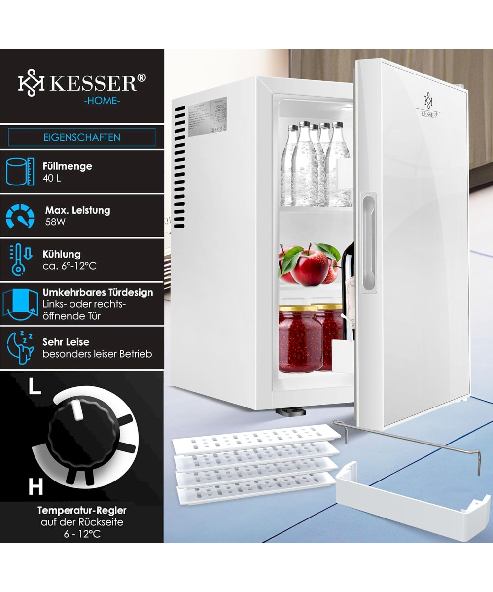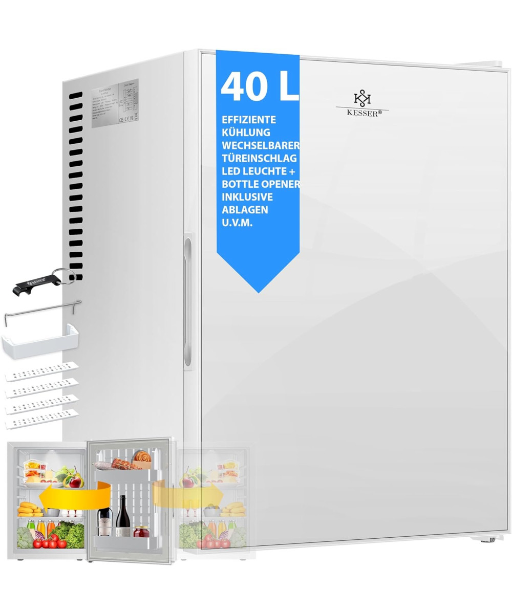 KESSER Mini réfrigérateur 40L avec serrure et façade en verre blanc