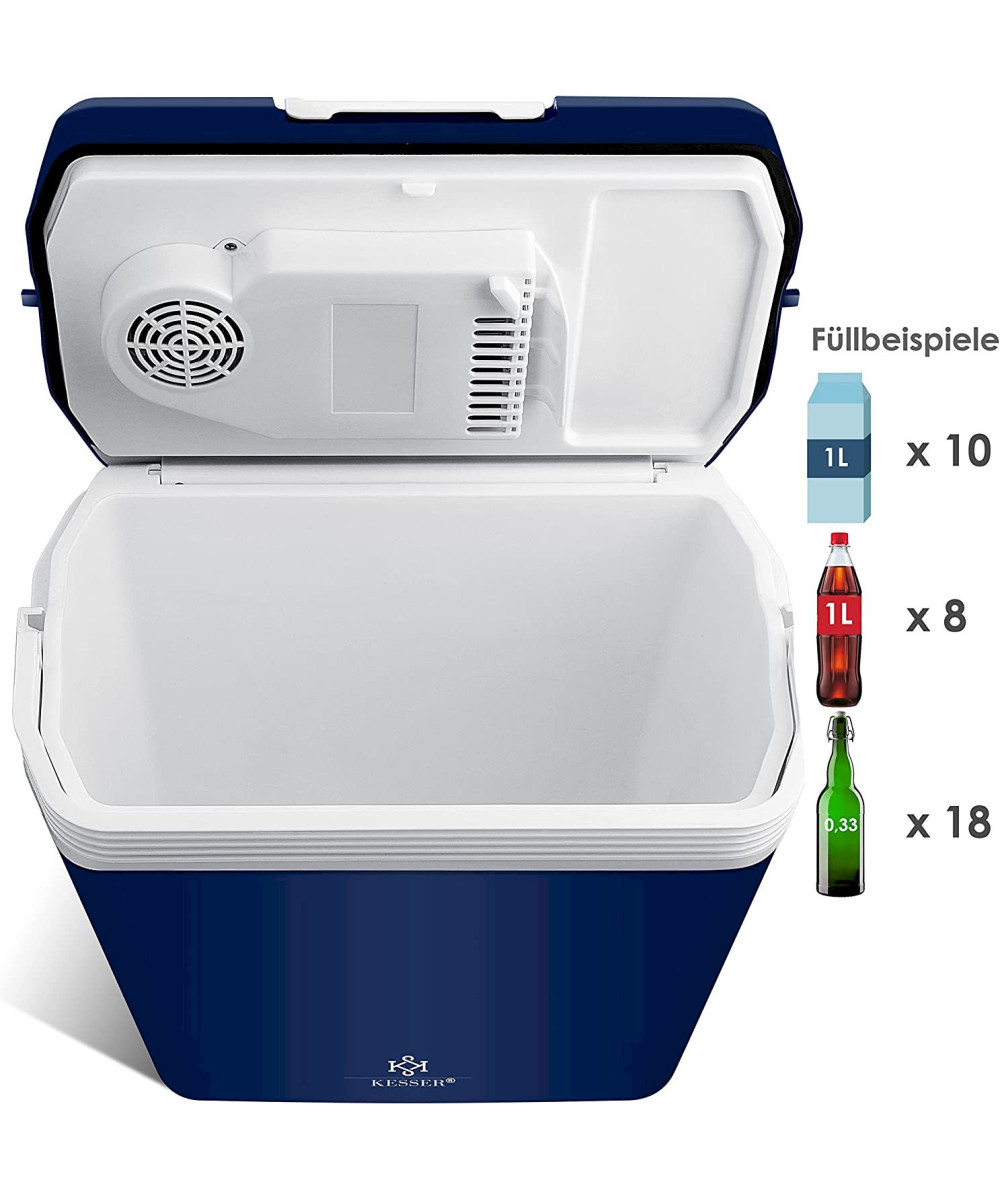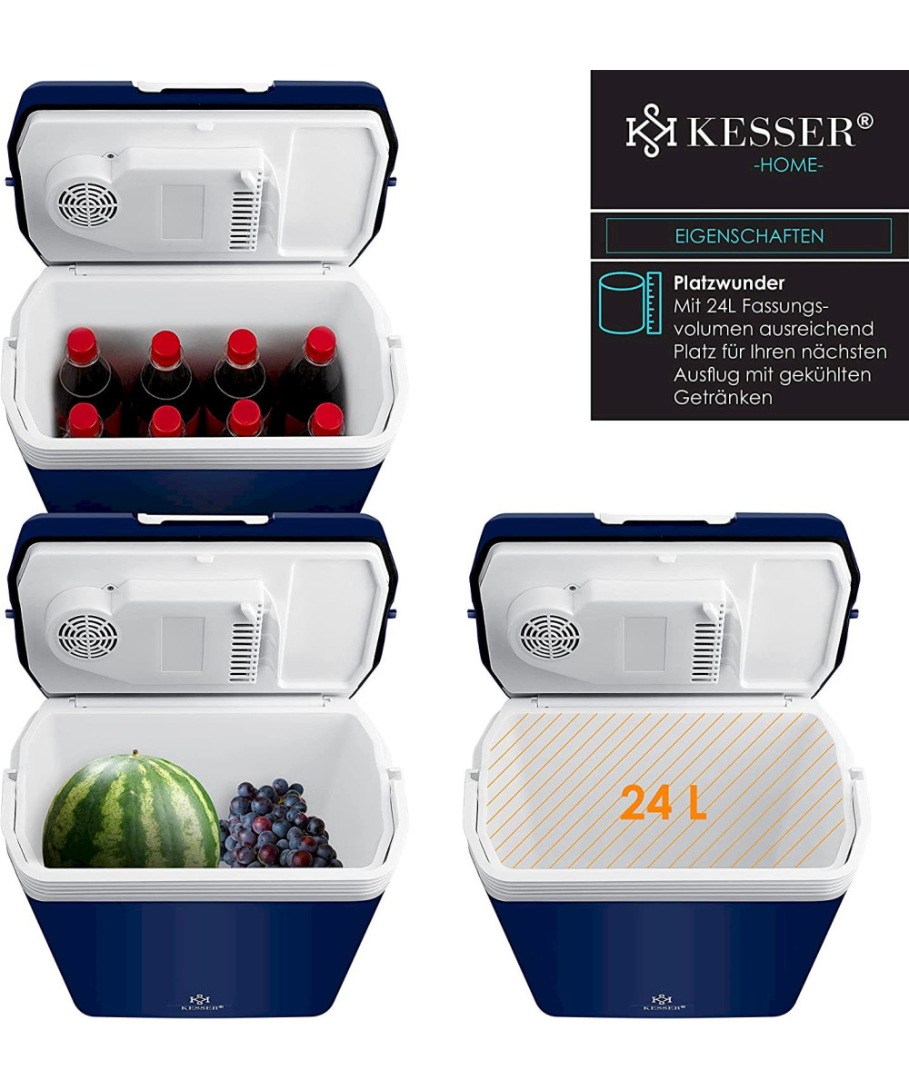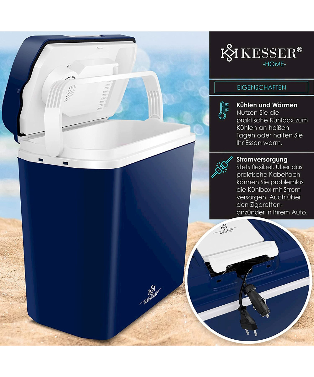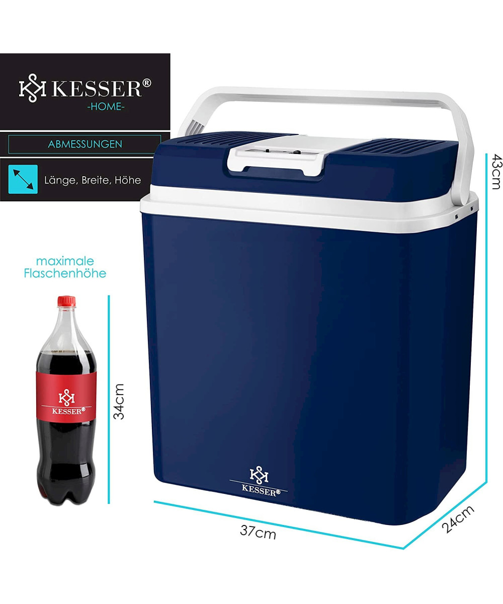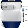 Glacière thermoélectrique de 24 litres - Pour garder au chaud, chauffer et refroidir - Prise 12 V et 230 V - Grâce à la poignée intégrée de Transformer CA/CC dans le couvercle - Ouverture du couvercle en 2 positions possibles - Poignée de transport - Convient également pour verrouiller le couvercle - Consommation d'énergie selon la classe d'efficacité énergétique : 70 kwH par an - Fonctionnement maximum à 35 dB, en mode ECO - Fonctionnement ultra silencieux - 2 programmes : COLD, HOT2 Niveaux de puissance : ECO (seulement en 230 V), fusible de sécurité max interchangeable (T6,3AL250V) en 12 V - Prise universelle pour protéger la glacière - Lumière LED rouge en mode HOT et LED verte en mode COLD - Utilisation facile et immédiatement prêt à l'emploi avec 2 interrupteurs - Faible encombrement 37 cm x 24 cm - Gaz isolant cyclopentan C5H10 pour encore meilleur. Isolation