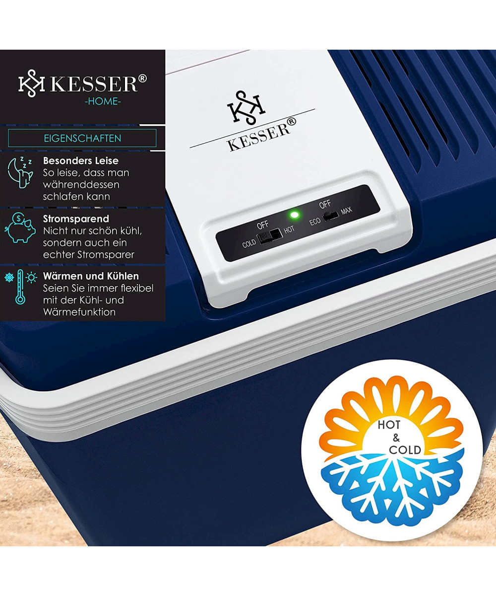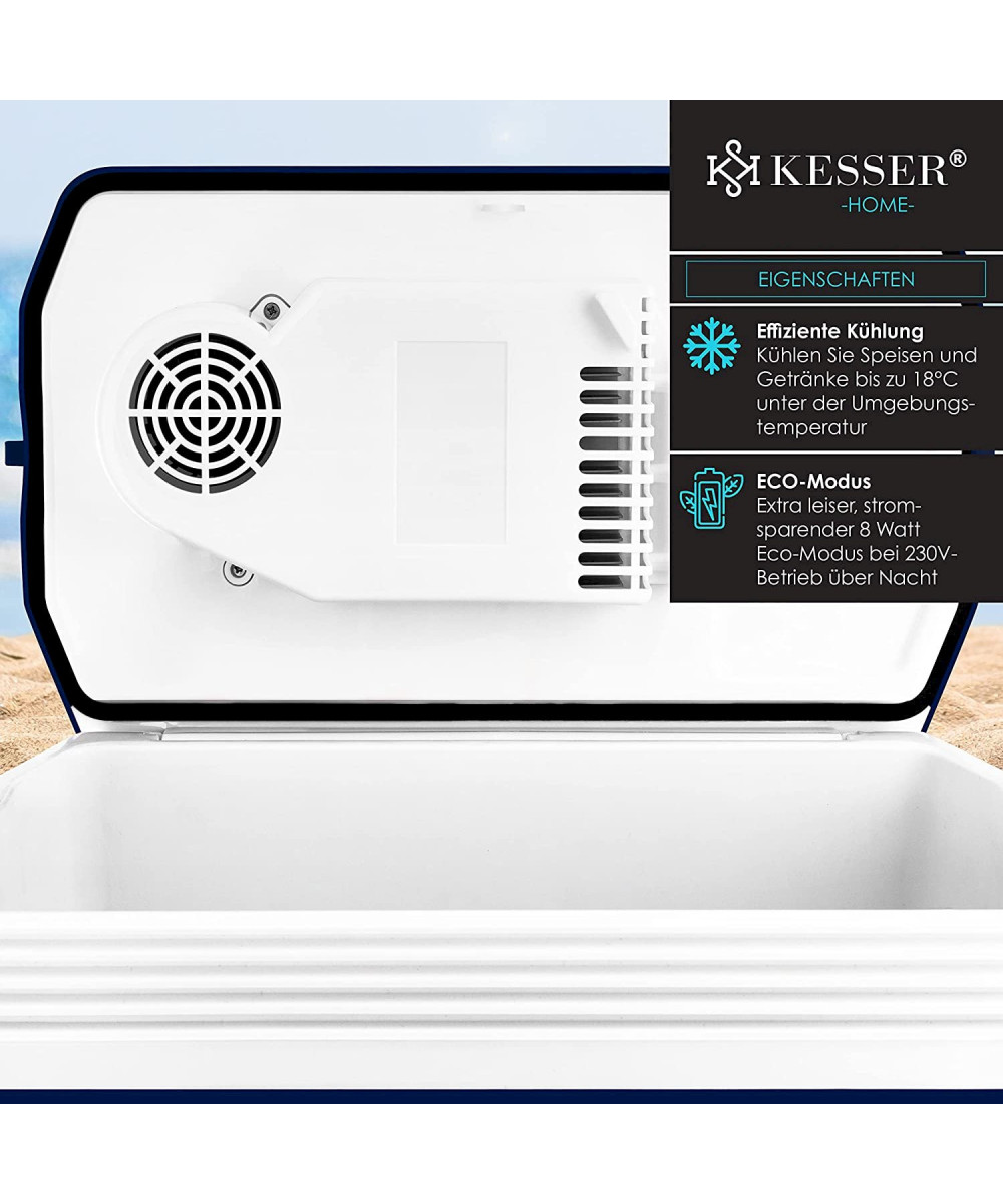 Avec la fonction de refroidissement, il est possible de refroidir vos boissons ou aliments jusqu'à 18 degrés en dessous de la température extérieure. L'avantage de la glacière Kesser est que vous n'avez pas besoin de réfrigérateur pendant les barbecues en été, vous pouvez garder les boissons et les aliments au frais dans la boîte. La glacière est équipée de 2 niveaux de puissance différents : MAX et ECO.
