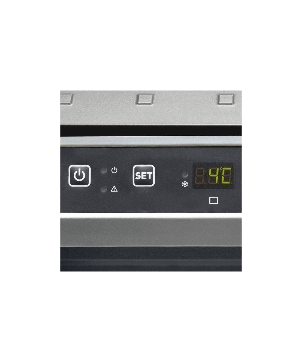 Glacière à Compresseur CFX WAECO idéale pour tenir au frais et réfrigérer vos aliments. Ce frigidaire portable fonctionne comme un réfrigérateur de bateau ou de camping car. Convient pour un fonctionnement à l'énergie solaire Classe énergétique A++ Convient pour la congélation jusqu'à -22°C Excellente performance de refroidissement, même à très haute température extérieure CFX avec électronique spéciale, affichage digital de la température permettant un réglage précis. Fonctionnement extrêmement efficace et très silencieux Bouchon de vidange pour faciliter le nettoyage Version Heavy-duty avec des renforts sur les coins. Caractéristiques techniques du frigidaire portable à compresseur WAECO CFX - 32L DOMETIC Volume utile de 26 à 60L Tension d'alimentation 12/24 Volts DC 100 - 240 Volts AC Plage de température +10 °C à -22 °C Puissance absorbée de 40 à 60 Watt Consommation de courant 0,32 à 0,42 Ah/h pour une température ambiante de +20°C 0,58 à 0,76 Ah/h pour une température ambiante de +32°C, avec une température intérieure de l'appareil de +5°C Energy class A++ Isolation entièrement en mousse polyuréthane Système compresseur entièrement hermétique avec commande électronique intégrée, thermostat électronique, protecteur de batterie / coupe-circuit électronique, irréversibilité automatique. Dispositif électronique spécial CFX : Réfrigération rapide (turbo) intelligente, automatique - Contrôleur de batterie à 3 niveaux, réglable par affichage digital - Affichage digital à 4 chiffres - Affichage digital en degrés Celsius ou Fahrenheit au choix - Sélection de la température sur l'écran - Affichage de la température intérieure réelle - 2 indicateurs LED de fonctionnement/dysfonctionnement séparés - Fonction mémoire pour enregistrer les derniers paramètres Matériaux Caisson : PP + ABS Couvercle : PP Couleur gris clair / gris foncé Conformité TÜV/GS, homologuée e (directives EMC/véhicules) Livré avec Panier amovible, poignées démontables