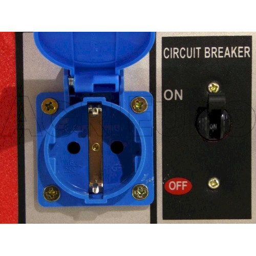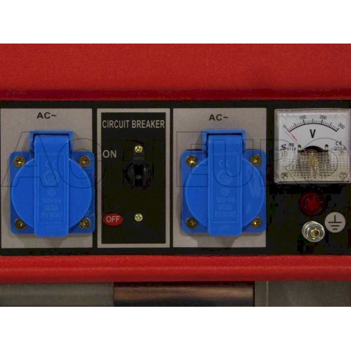- Interrupteur actionnement Lorsque le moteur est mis en route, en actionnant cet interrupteur le groupe électrogène commencera à fournir du courant (et l'aiguille du voltmètre indiquera 230 volts).