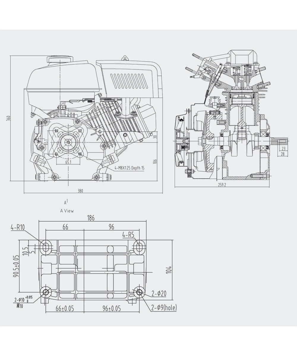 | Motor Bauart | 25° geneigter 4-Takter, 1 Zylinder, luftgekühlt, OHV Benzinmotor |