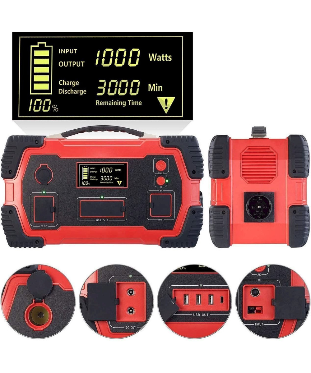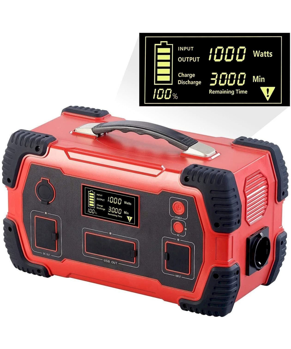 - Batterie li-ion intégrée 216 000 mAh (800 Wh), chargement 12 et 230 V, durée de chargement jusqu'à 6h, également par panneau solaire (non fourni)