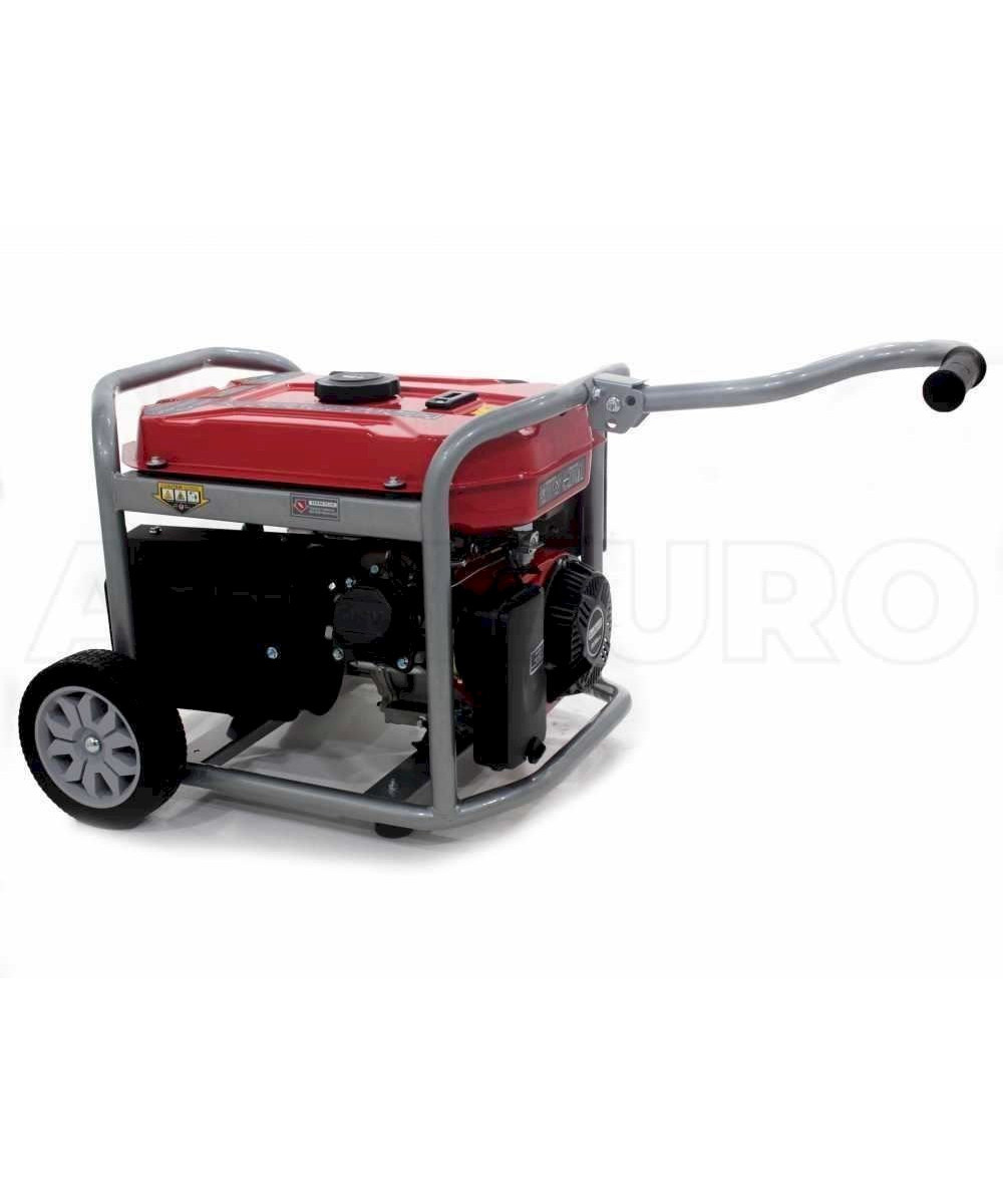 Ce générateur de courant est équipé d'un moteur thermique de 224 cm3 et 6 cv et d'un alternateur avec enveloppe en cuivre en mesure de fournir une puissance maximale de 3,6 Kw .