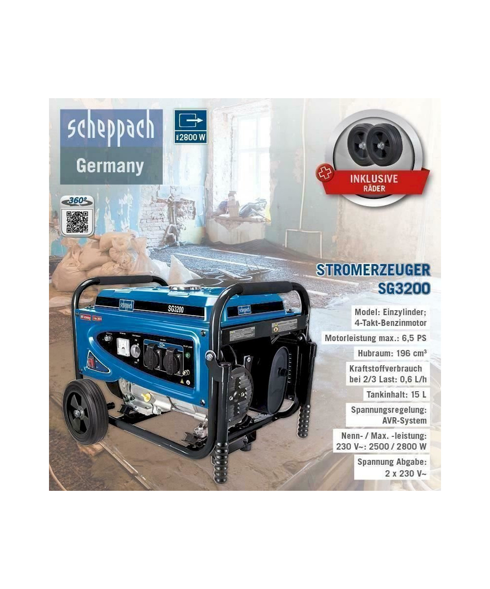 SCHEPPACH SG3200 GROUPE ELECTROGENE GENERATEUR A ESSENCE 6,5HP 2,8 kW