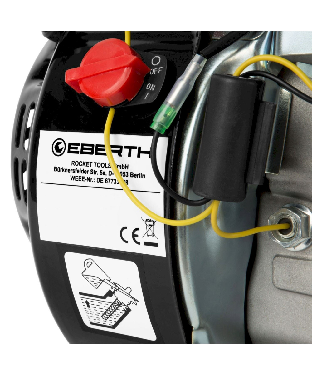 - Le moteur à essence 4 temps 1 cylindre d'EBERTH est démarré à l'aide d'un palan à câble