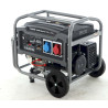 Le générateur peut être transporté facilement grâce aux deux roues postérieures et à la poignée dans la partie frontale qui permet de le transporter dans n'importe quel endroit où l'opérateur a besoin de l'utiliser permettant ainsi de toujours avoir du courant à disposition. Dans la partie inférieure se trouvent des parties en caoutchouc anti-vibrant qui en réduisent le mouvement et les vibrations pendant son utilisation.