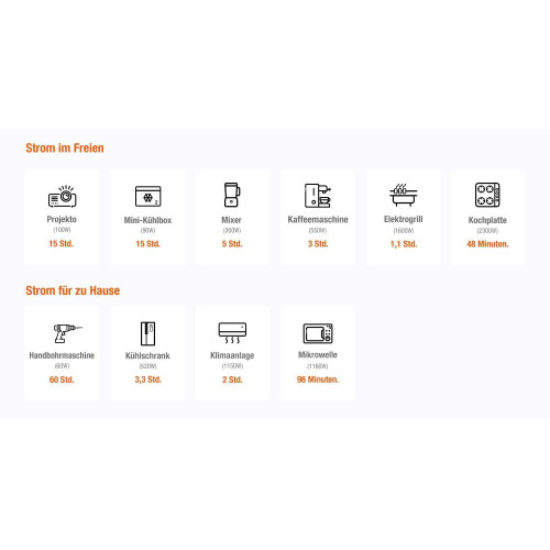 | 2x SolarSaga 200W Solar Panel | ca 7,5 Std. |