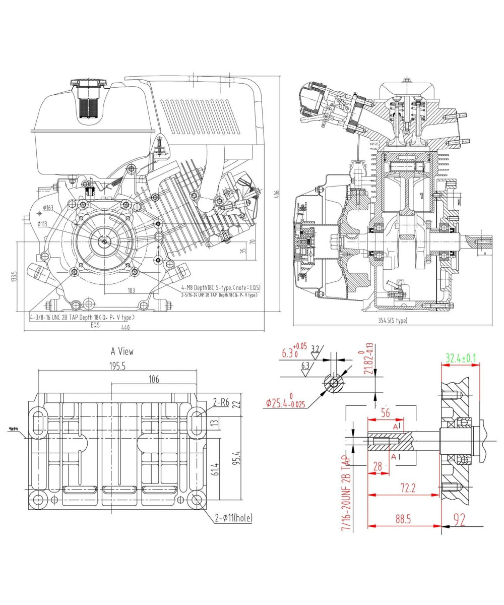 LIFAN 177 Moteur essence 6,6kW (9CV) 25,4mm 4-temps Lanceur manuel