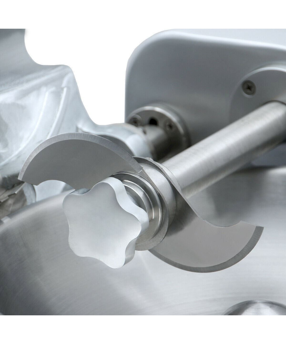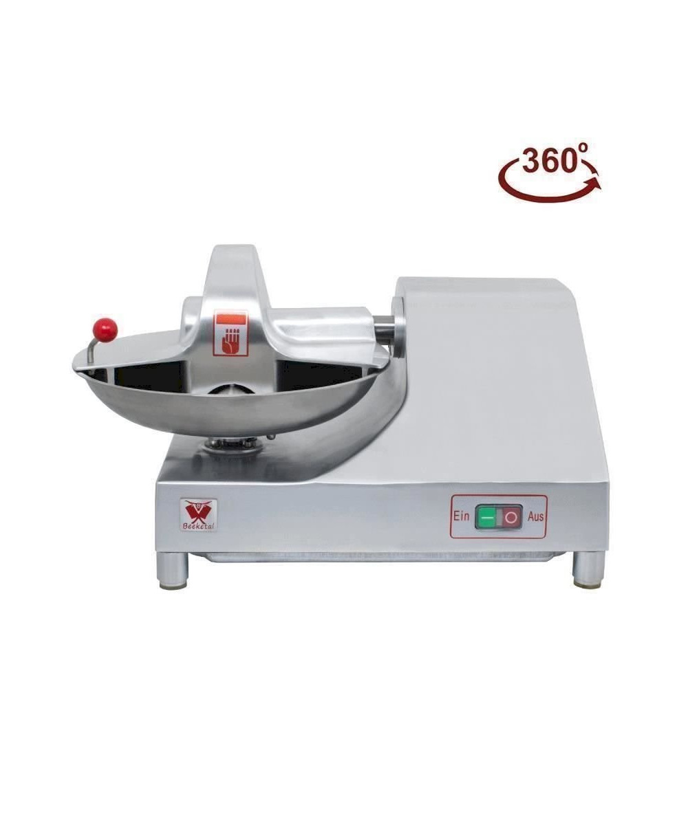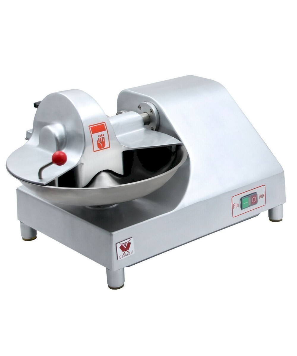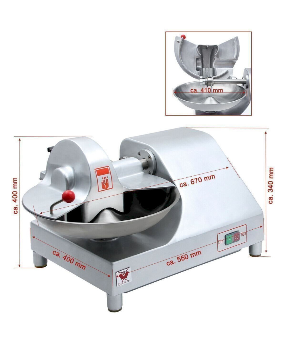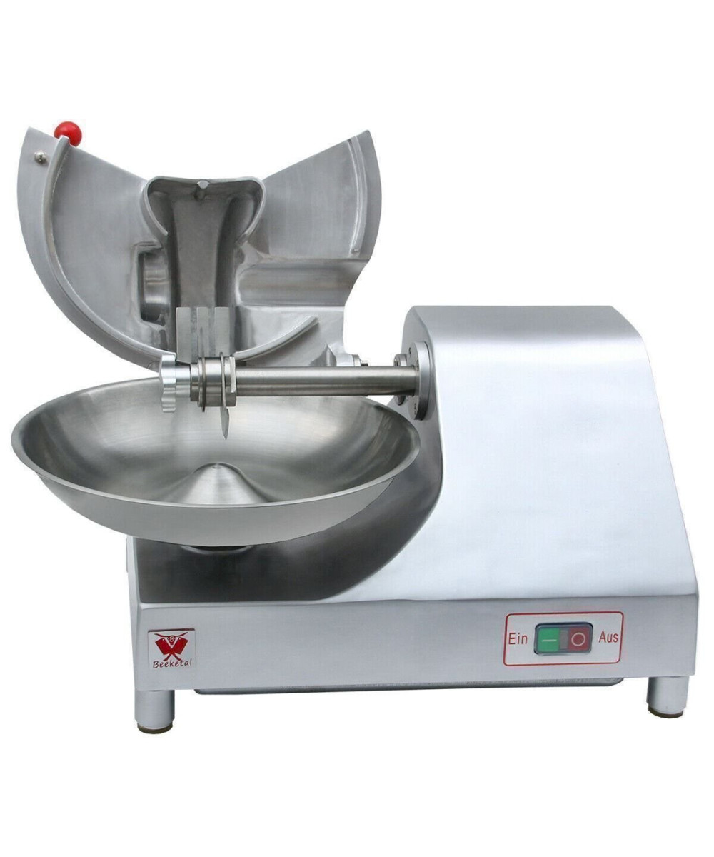 Cutter de table professionnel Metzger spécialement conçu pour la fabrication de plats à saucisses fins ou pour hacher la viande, les légumes, les fruits, les noix ou la glace. Grâce à la tête de lame à 2 lames en forme de faucille en acier inoxydable trempé, la lame 1460 tr/min et le bol rotatif, vous obtiendrez toujours les meilleurs résultats de finition. Le cutter dispose également d'un bouton d'arrêt d'urgence facilement accessible.