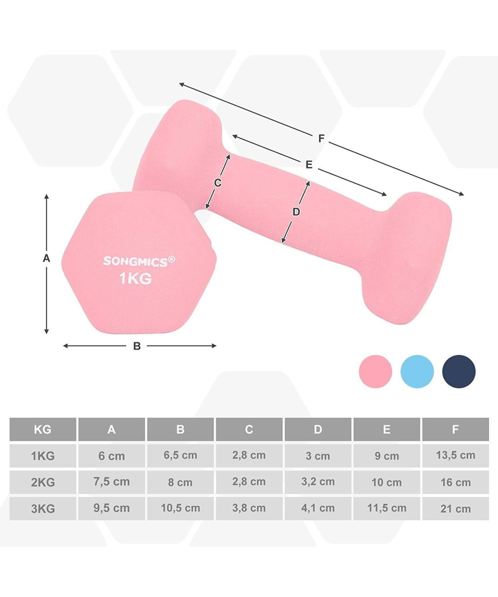 SONGMICS Set d’haltères, 3 Paires, 2x1 kg 2x2 kg 2x3 kg