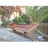Le cadre du hamac est en bois dur (Cantanopsis) et est complété par la surface de couchage colorée en coton.