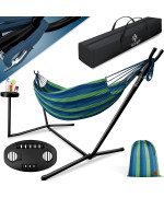 Hamac LAKE pour 2 personnes avec cadre de support et porte-boisson - max 200 kg bleu