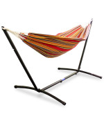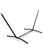 Le cadre en acier robuste et le hamac en mélange coton-polyester s'installent rapidement et facilement.