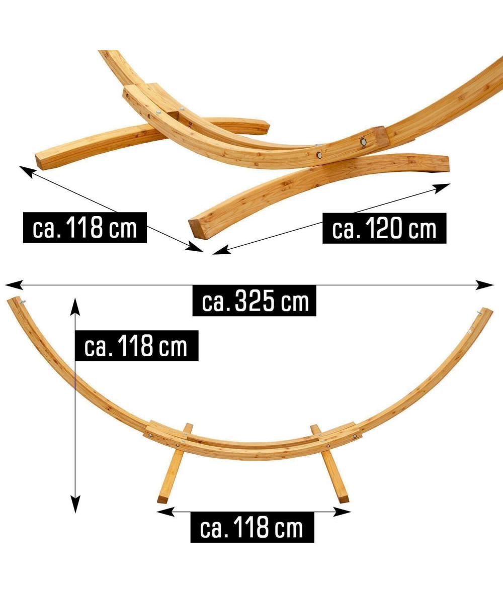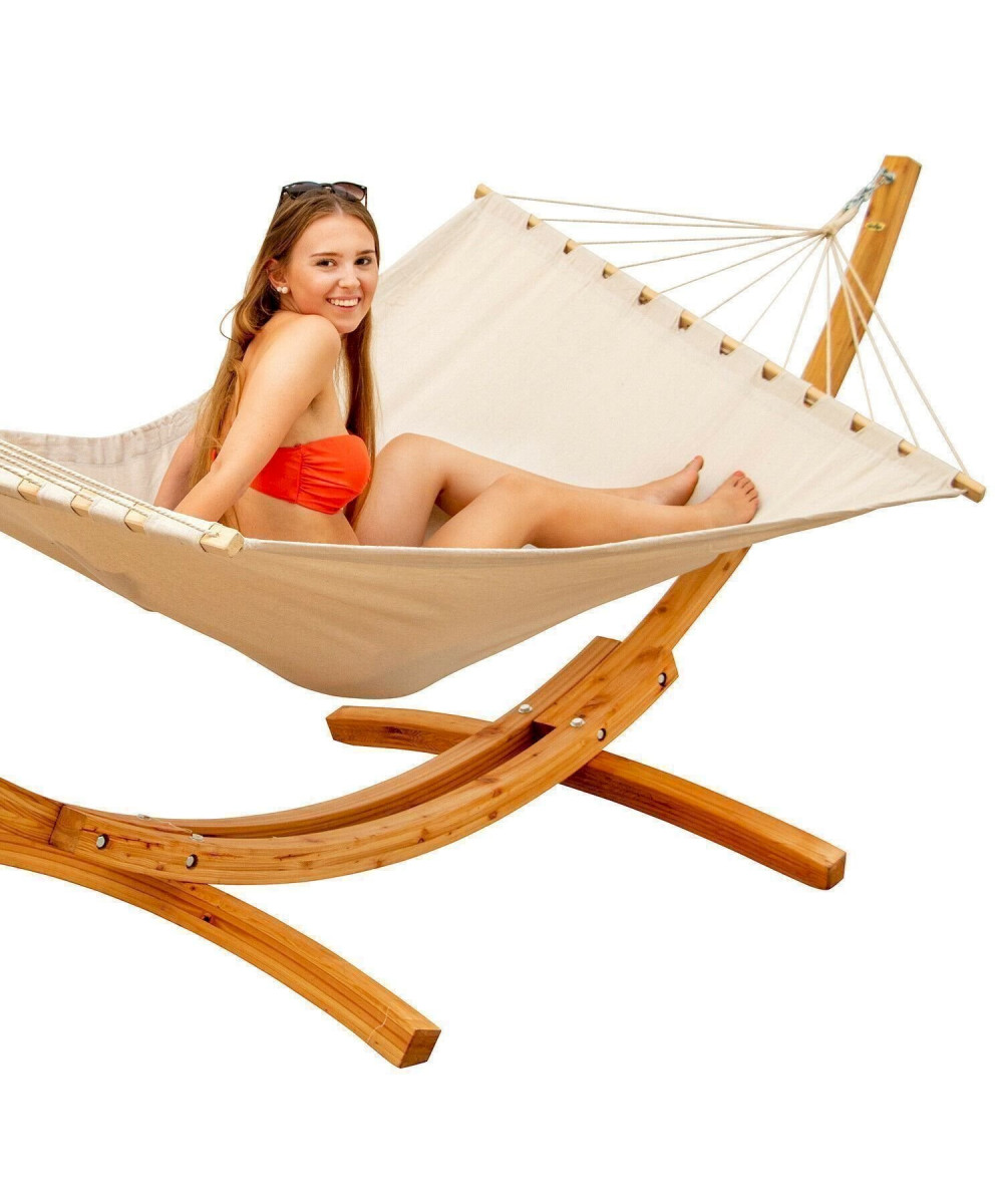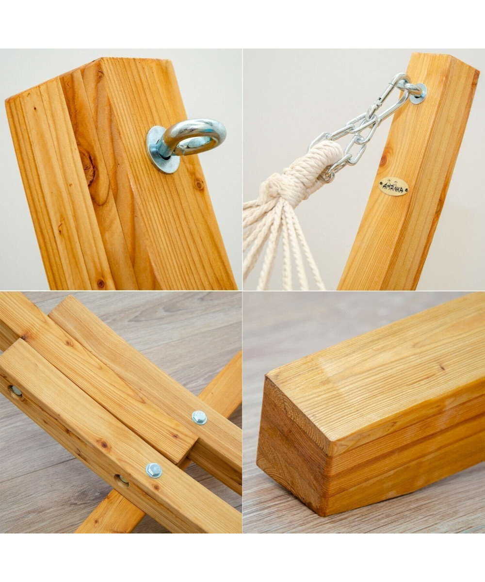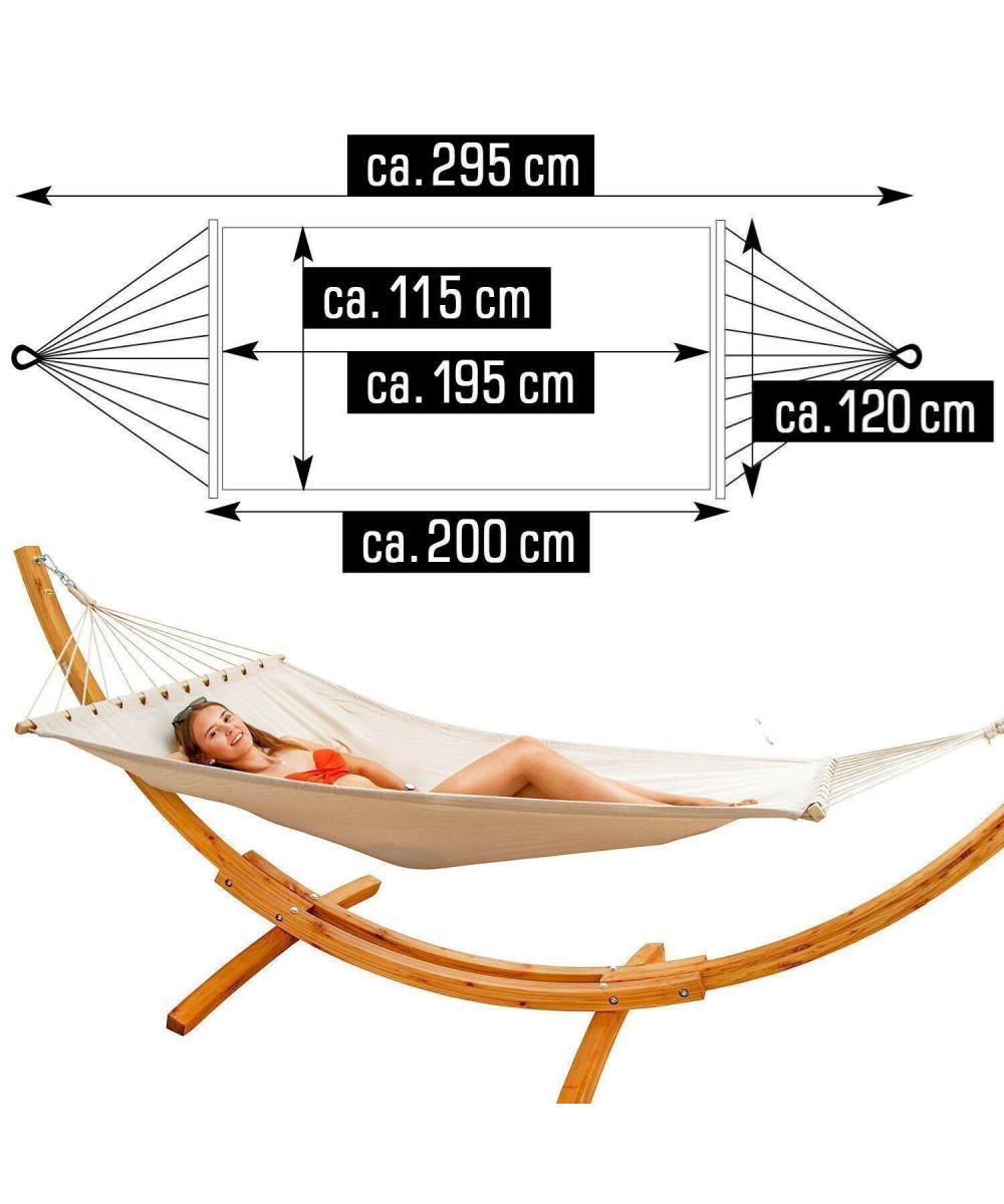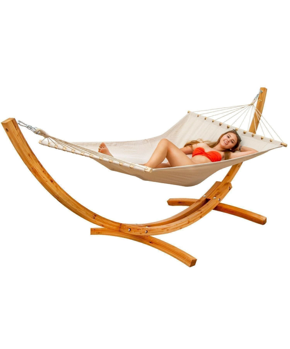 Hamac XXL avec Support en Bois Naturel Chaise Longue Suspendue pour Jardin