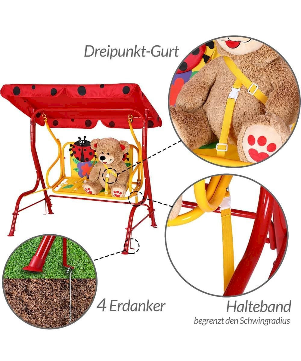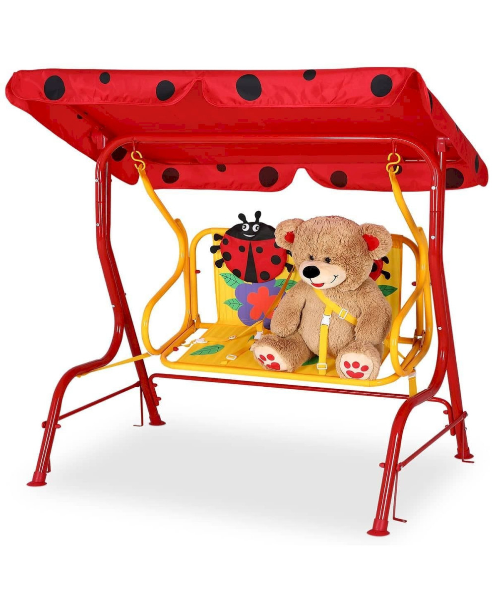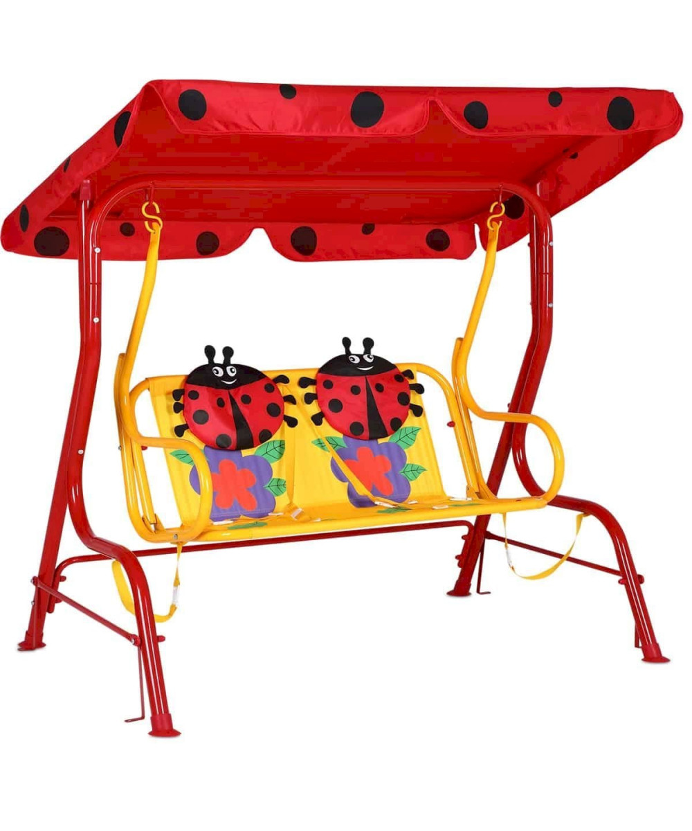Balancelle pour enfants Jardin - avec auvent - rouge motifs coccinelle "beetle"