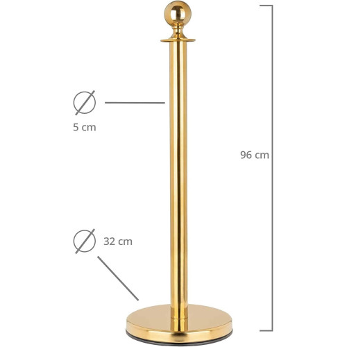 - DONNEES DU POTEAU DE BALISAGE - Hauteur: 96 cm, diamètre colonne: 5 cm, diamètre boule: 7 cm, diamètre socle: 32 cm, hauteur anneau de fixation de la corde: 84 cm, poids de chaque poteau: 5,2 kg