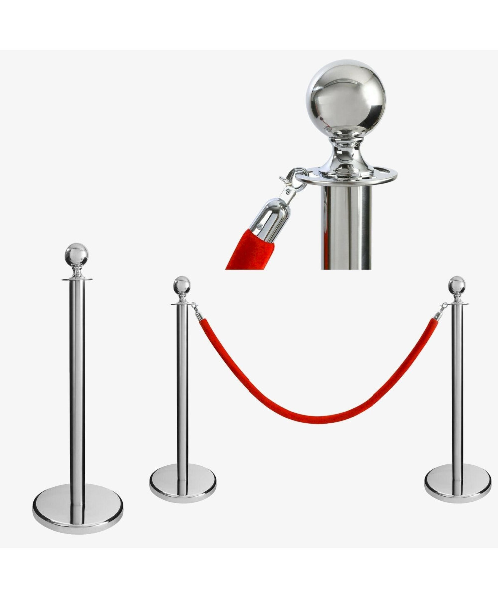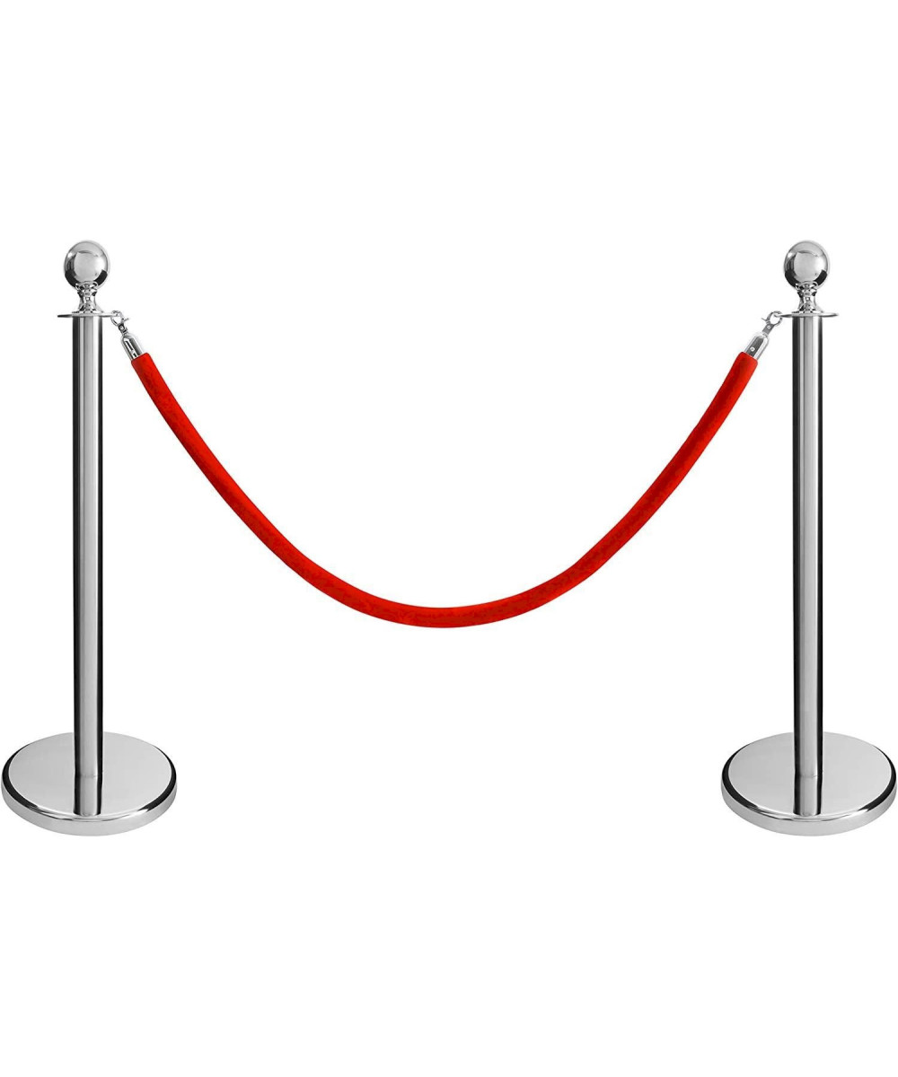 Système de guidage de personnes (2 pcs.) chromé avec cordon de velours rouge