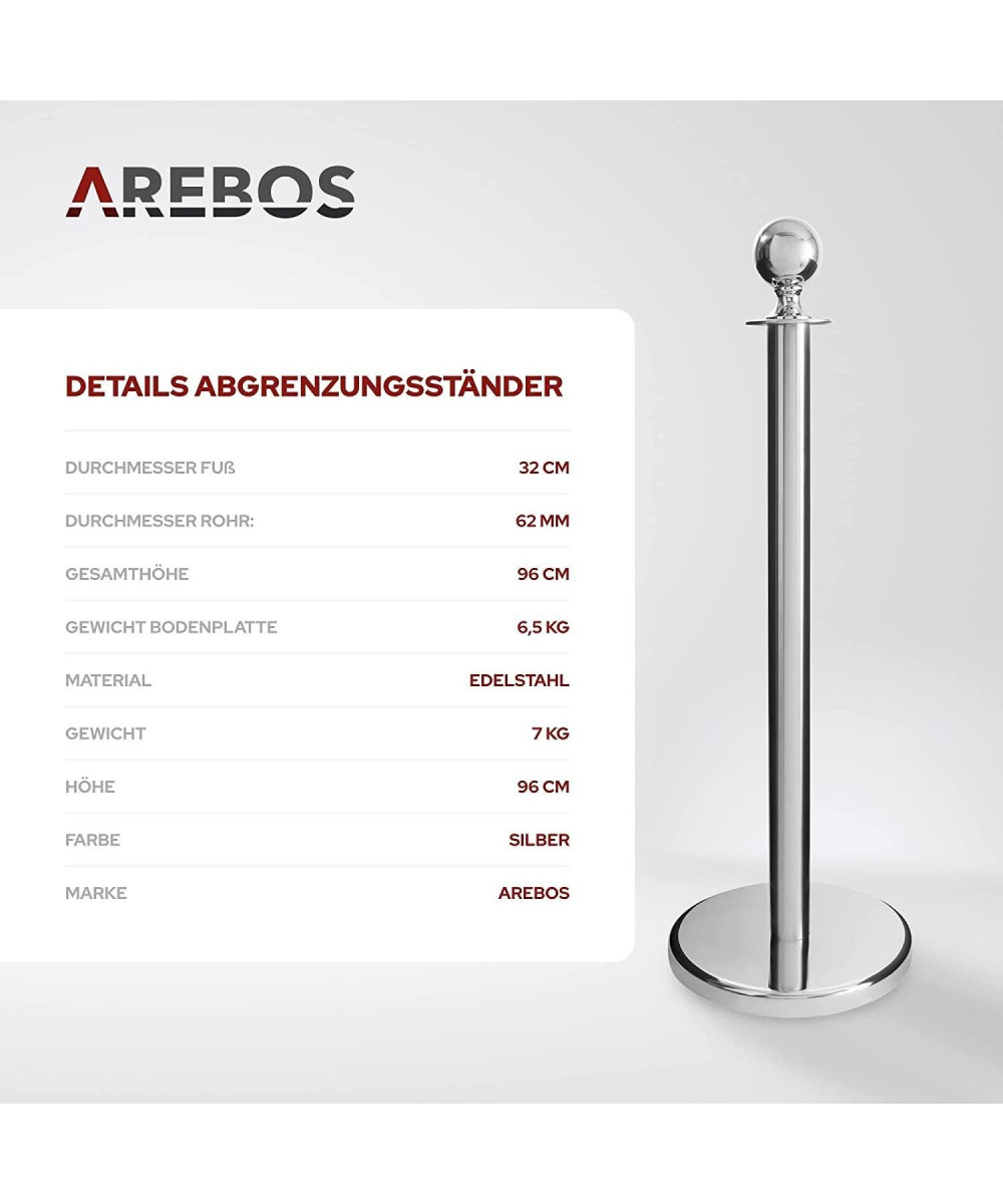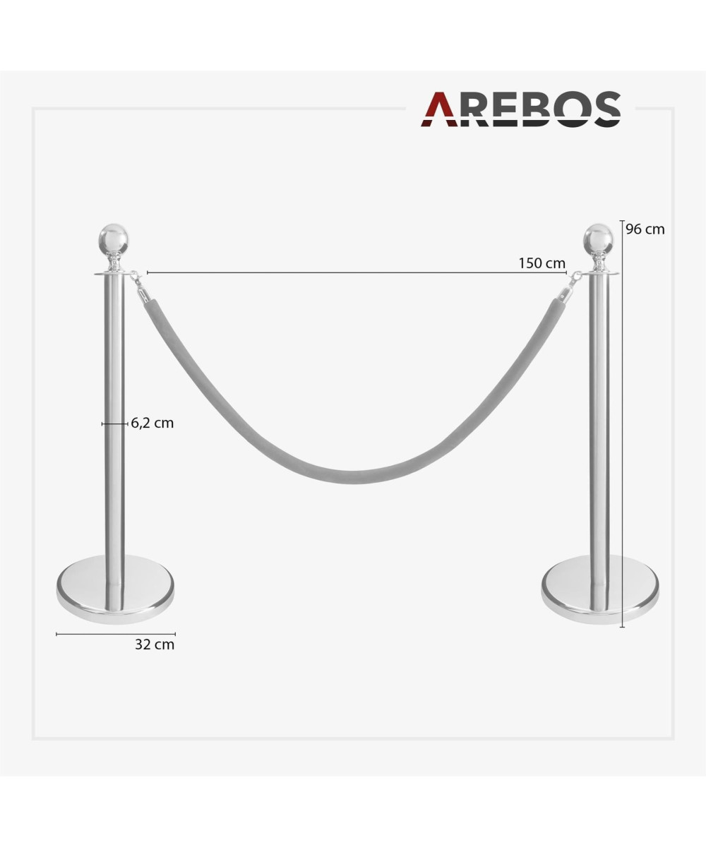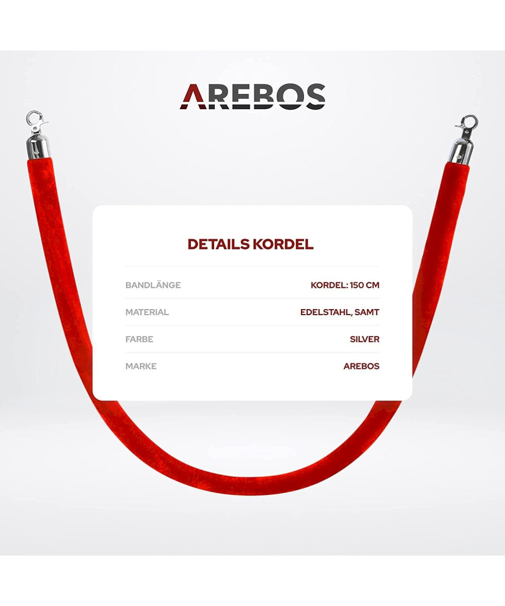 Combinez les poteaux de démarcation AREBOS avec un tapis rouge devant l'entrée de votre emplacement ‒ et en un rien de temps vos visiteurs se sentiront comme de vrais VIP... Il n'y a pas de limites à votre créativité quand il s'agit des utilisations possibles de la corde des poteaux. - Cordon rouge au fini velouté
