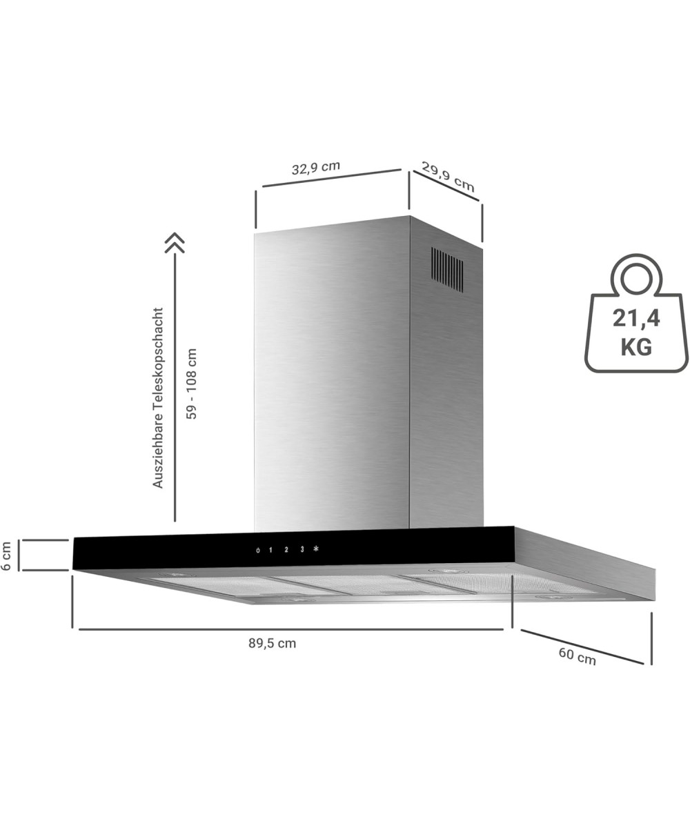 Durch Touch Control können die 3 Leistungsstufen der schrägen Dunstabzugshaube leicht gesteuert werden. Die Abdunsthaube garantiert dank der LED Beleuchtung ein optimales kocherlebnis.