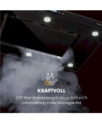La hotte Klarstein Valeria allie technologie moderne et élégance : avec 230 watts répartis sur trois niveaux de puissance - faible, moyenne et élevée - elle renvoie aux vestiaires les fumées de cuisson et traite jusqu’à 650 m³ d’air extrait par heure. Elle se contrôle de manière très simple par un écran tactile sur le panneau avant. Un éclairage de la surface de cuisson à commande séparée composé de 6 ampoules LED très efficaces offre un bon éclairage aux casseroles et poêles et permet les coups d'oeil éclairés des curieux. Une minuterie réglable par incréments de 5 à 60 minutes permet d'éteindre automatiquement la hotte et garantit que la hotte élimine jusqu'au dernier jet de vapeur pendant que vous êtes déjà à table avec votre famille. Le contrôle automatique de la température garantit également que la hotte s'allume et s'éteint automatiquement dès que de la vapeur est effectivement produite sur la cuisinière.