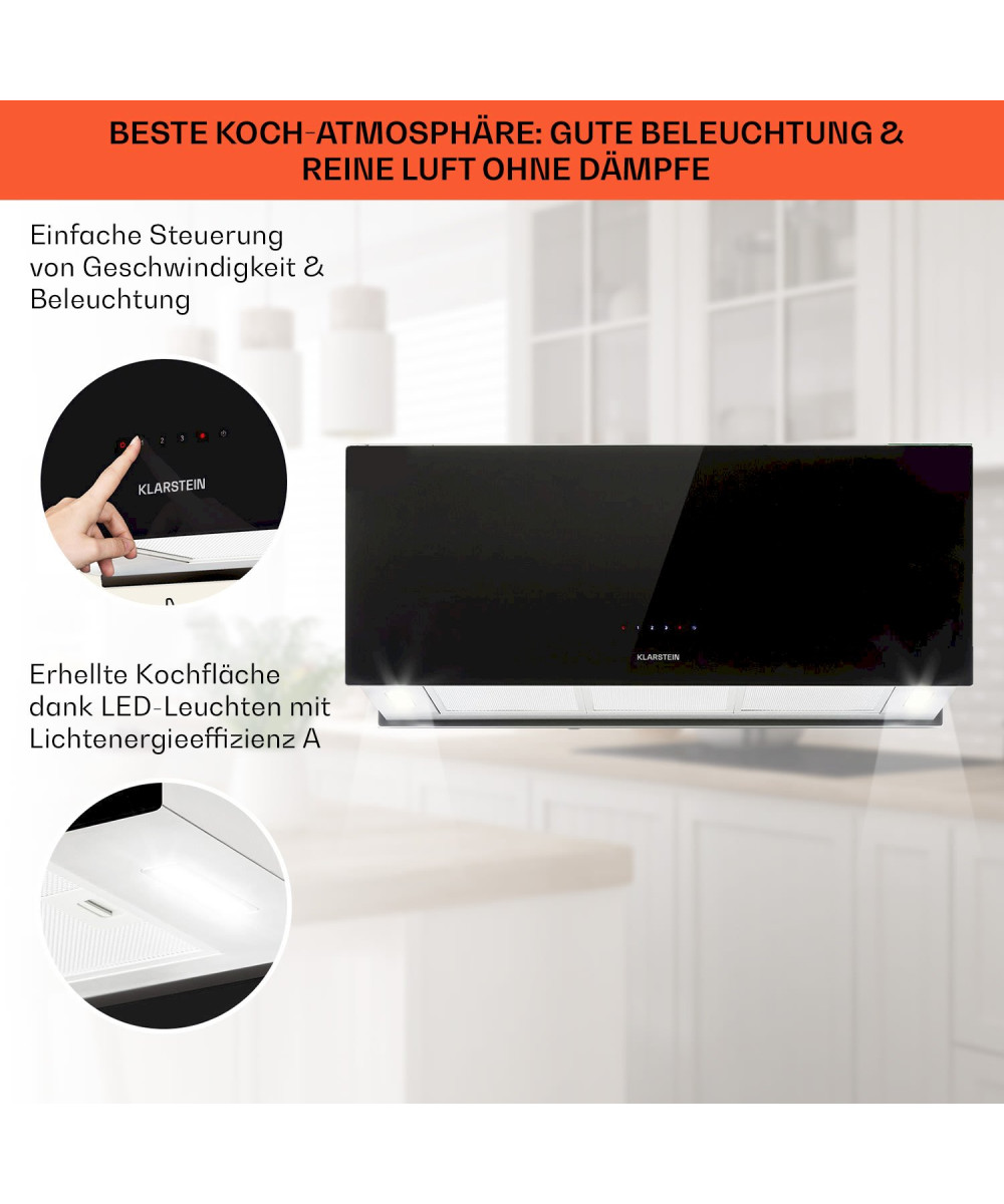 Klarstein KRONLEUCHTER XL hotte îlot aspirante 90cm A 590m³/h noir