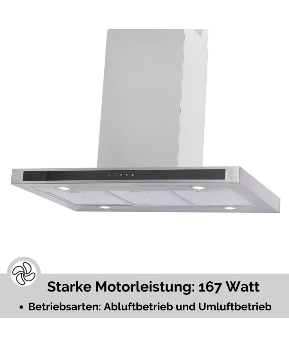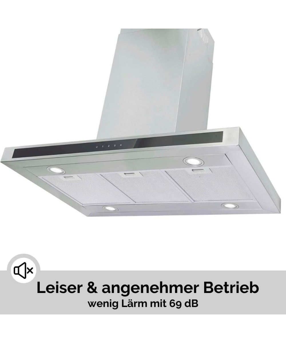 PKM 8099GISZ hotte îlot en acier inoxydable 90cm avec panneau en verre 613m³/h