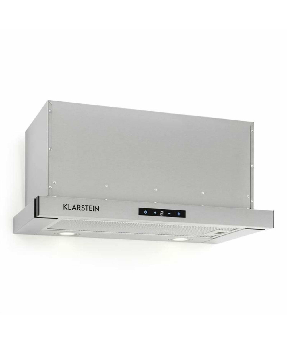 La hotte aspirante à suspendre Klarstein Vinea assure un air frais dans les petites cuisines et double son efficacité en un seul geste de la main grâce à son design ingénieux.