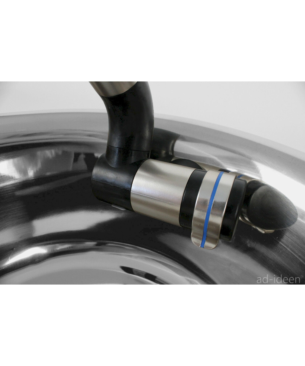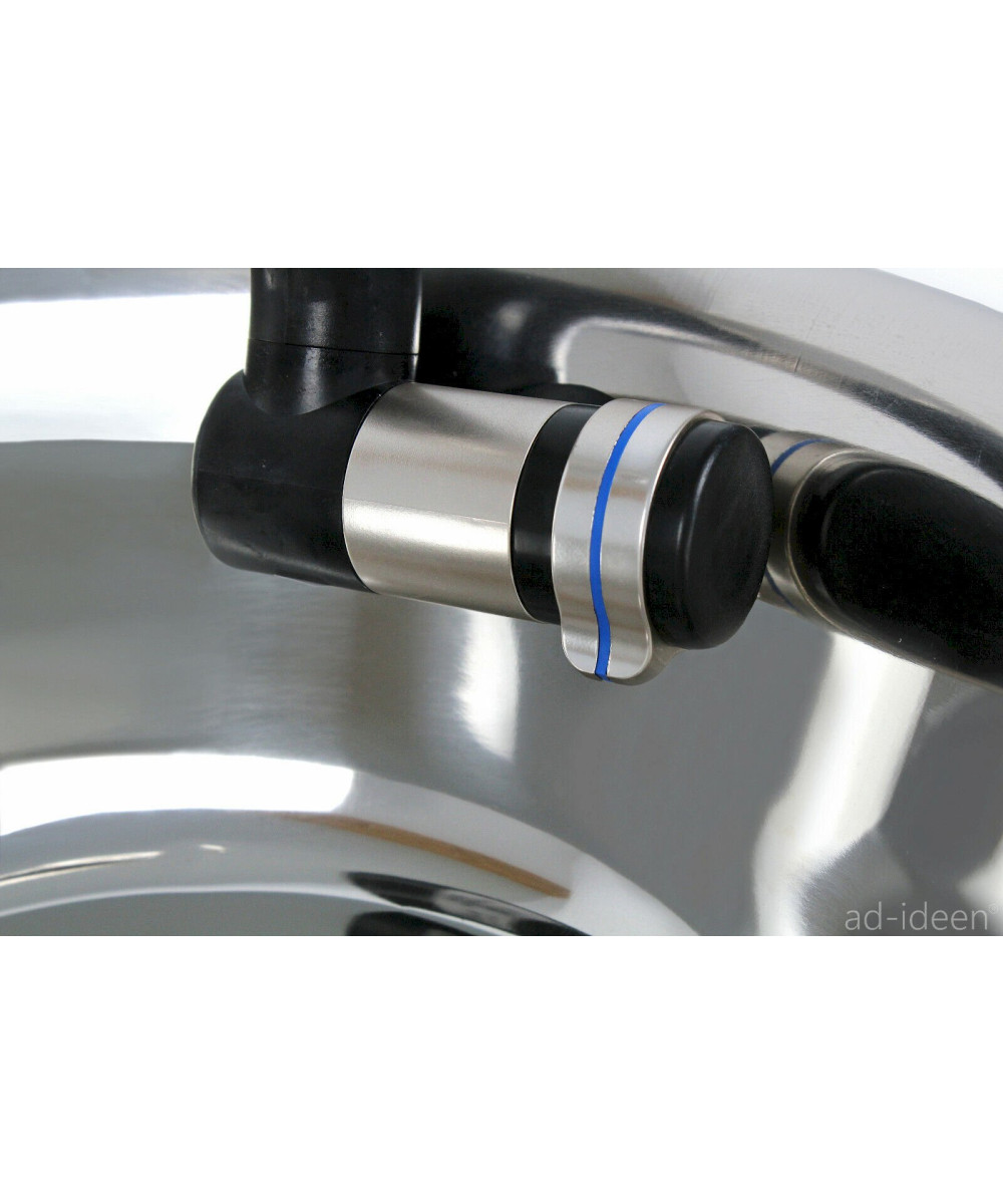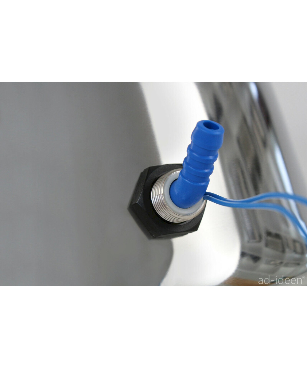 1 Stück Ablauf 90° gewinkelt mit 19 mm Schlauchanschluss - 1 Stück Stöpsel, oberhalb aus Edelstahl