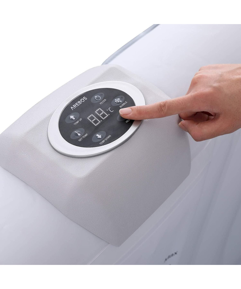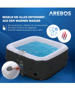 Que vous ayez besoin de vous rafraîchir par une chaude journée d'été ou que vous vouliez prendre un bain agréablement chaud en hiver, ce spa gonflable d'AREBOS vous assure une expérience de massage apaisante en plein air. Ce spa autogonflant peut accueillir 4 personnes pour profiter d'un massage relaxant en même temps. Pour ce faire, le bain est équipé de 100 jets de bulles et peut chauffer l'eau jusqu'à 40 °C.