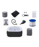 La livraison comprend une bâche de sol destinée à protéger le sol du spa. Une couverture isolante, ainsi qu'une pompe de filtration et une cartouche de filtration sont également incluses. La piscine est dotée de deux poignées pour faciliter le transport. Si la coque en PVC de la piscine présente des petits trous ou des perforations, utilisez les patchs fournis pour une réparation sûre et imperceptible ! - Jets de bulles dynamiques