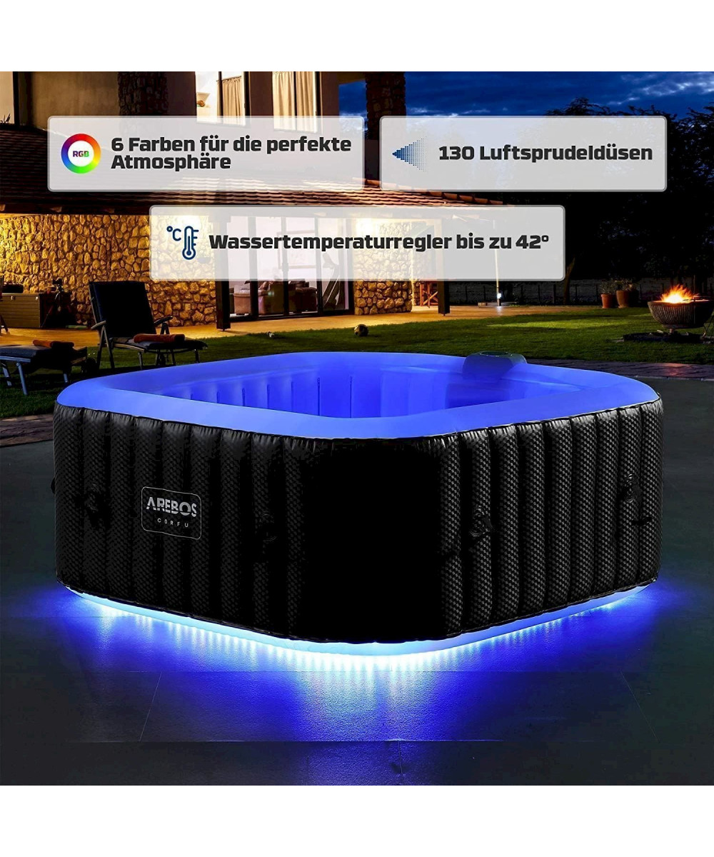 Carré gonflable de massage bien-être de piscine de spa extérieur avec LED - schwarz - Arebos