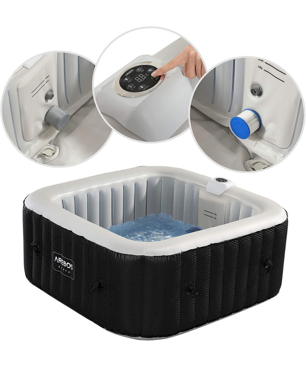 Que vous ayez besoin de vous rafraîchir par une chaude journée d'été ou que vous vouliez prendre un bain agréablement chaud en hiver, ce spa gonflable d'AREBOS vous assure une expérience de massage apaisante en plein air. Ce spa autogonflant peut accueillir 4 personnes pour profiter d'un massage relaxant en même temps. Pour ce faire, le bain est équipé de 130 jets de bulles et peut chauffer l'eau jusqu'à 42 °C. Différents accessoires tels que des filtres de rechange, des porte-gobelets ou des coussins pour la nuque sont vendus séparément par nos soins.