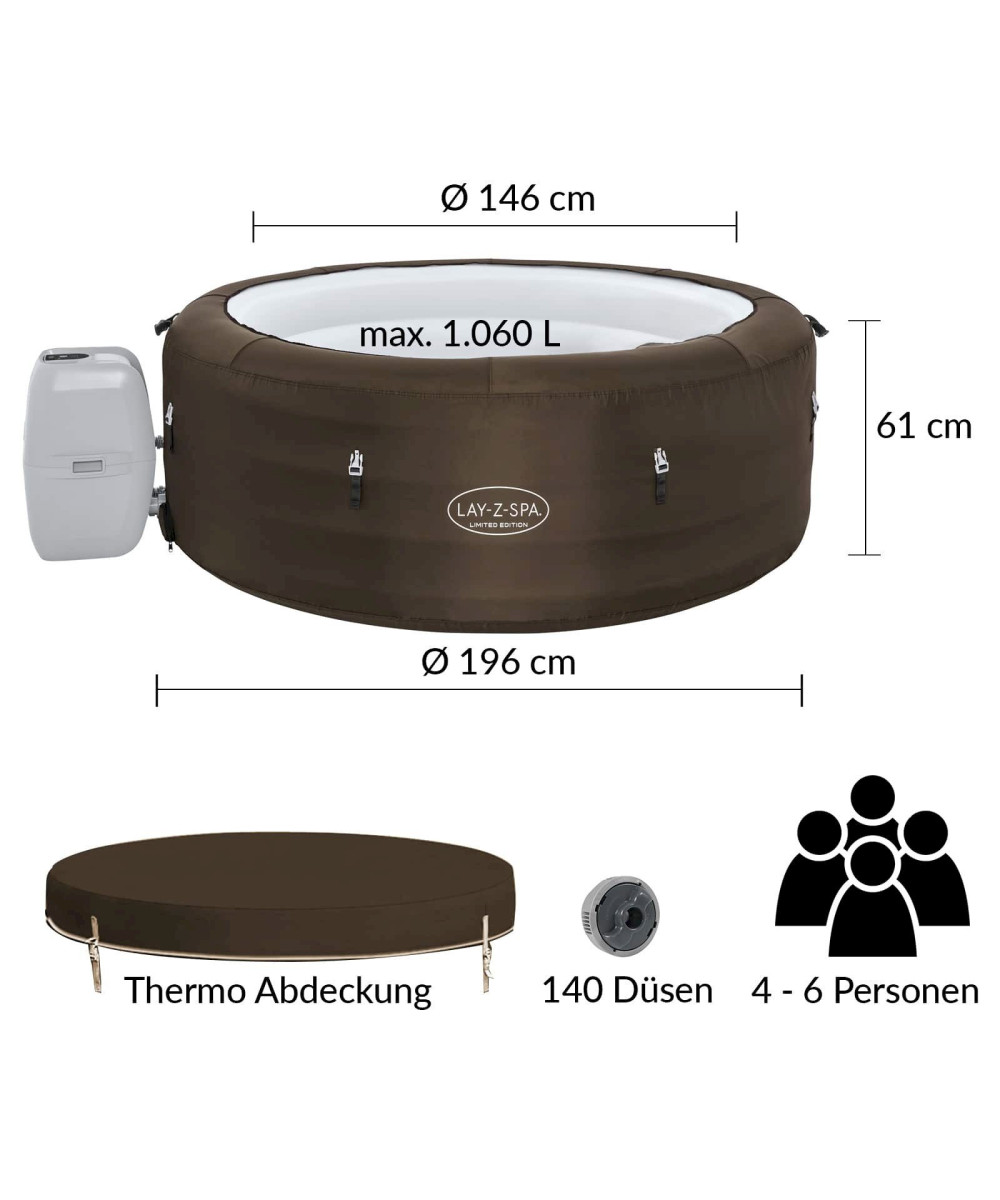 Whirlpool Spa Bain à remous Bain bulles LAY-Z édition limité Ø196x61cm cartouche filtrante