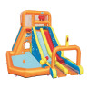 Le Méga Parc Aquatique Sommet Des Vagues Tsunami est un parc aquatique adapté aux groupes, aux fêtes et aux événements mémorables. La prochaine attraction pour votre anniversaire, barbecue ou fête est déjà là! Le parc dispose de deux toboggans avec des protecteurs de sécurité afin que les enfants puissent courir toute la journée. Chaque toboggan dispose d'une plate-forme d'eau douce pour un plaisir instantané. Il y a beaucoup à explorer avec une grande piscine, un tunnel et un anneau de balles. La piscine peut être utilisée pour se rafraîchir avant une autre glissade sur le toboggan. Il a également un pistolet à eau intégré pour tremper les amis: il suffit de pointer et de pulvériser! Le cerceau et le tunnel amuseront tout le monde pendant qu'ils se relaient dans le toboggan. Atteignez le sommet du parc par un mur d'escalade doté de poignées et de points d'appui. Le mur mène à la cime de la tour qui est sécurisé avec des murs maillés pour plus de stabilité et de sécurité.