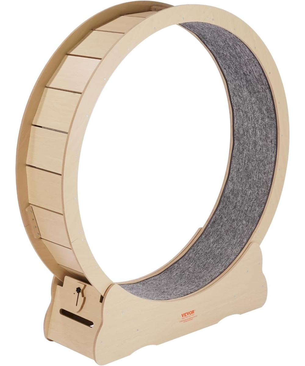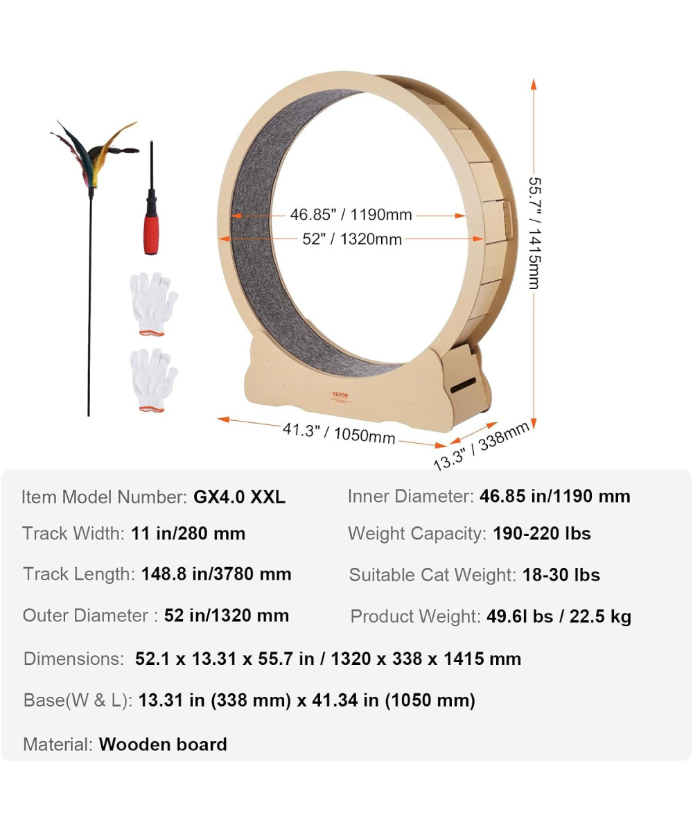 - Convient à toutes les tailles de chat : Avec un diamètre extérieur de 1 320 mm et un diamètre intérieur de 1 190 mm, cette roue pour chat s'adapte aux chats de toutes tailles, supportant les amis félins jusqu'à 13,6 kg. Elle permet à vos chats de s'étirer et de se déplacer librement, leur permettant ainsi de libérer au maximum leur énergie.