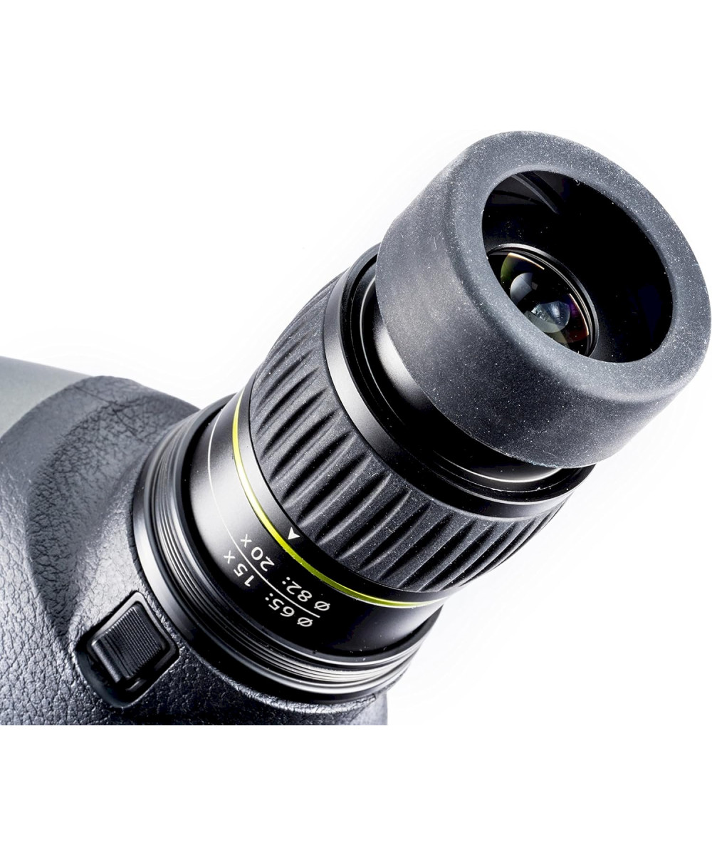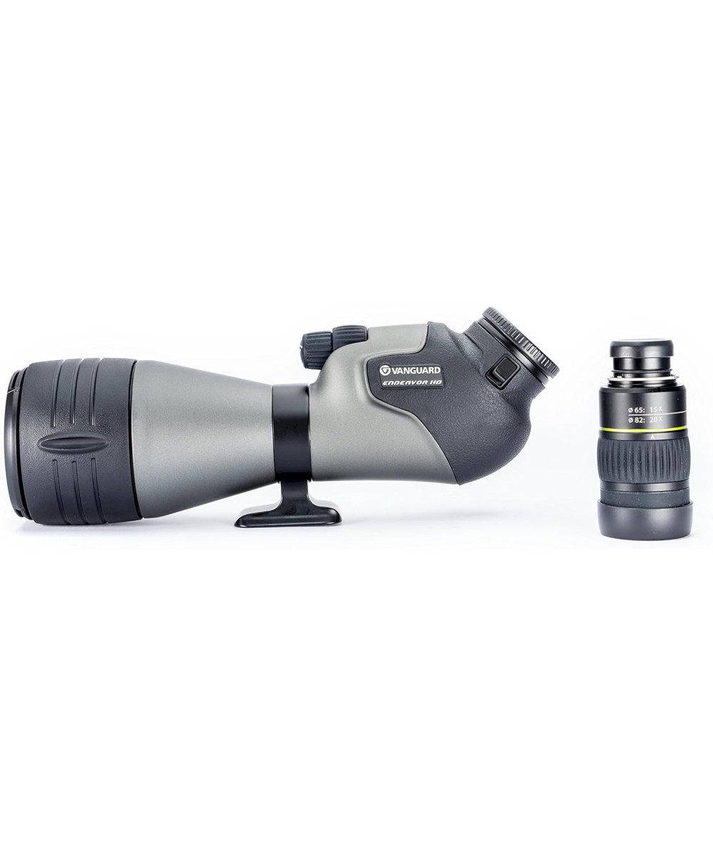 Le Endeavor 82 est livré avec un objectif de 82mm, avec un grossissement du zoom 20-60x. Il dispose d'un œilleton recouvert de caoutchouc extensible et bénéficie d'impressionnant dégagement oculaire même au plus haut réglage du zoom. Il fournit également un champ de vision très important. Un pare-soleil intégré est inclus afin d'éliminer les reflets de la lumière directe du soleil. De plus il comprend une housse imperméable rembourrée, avec une bandoulière de transport.
