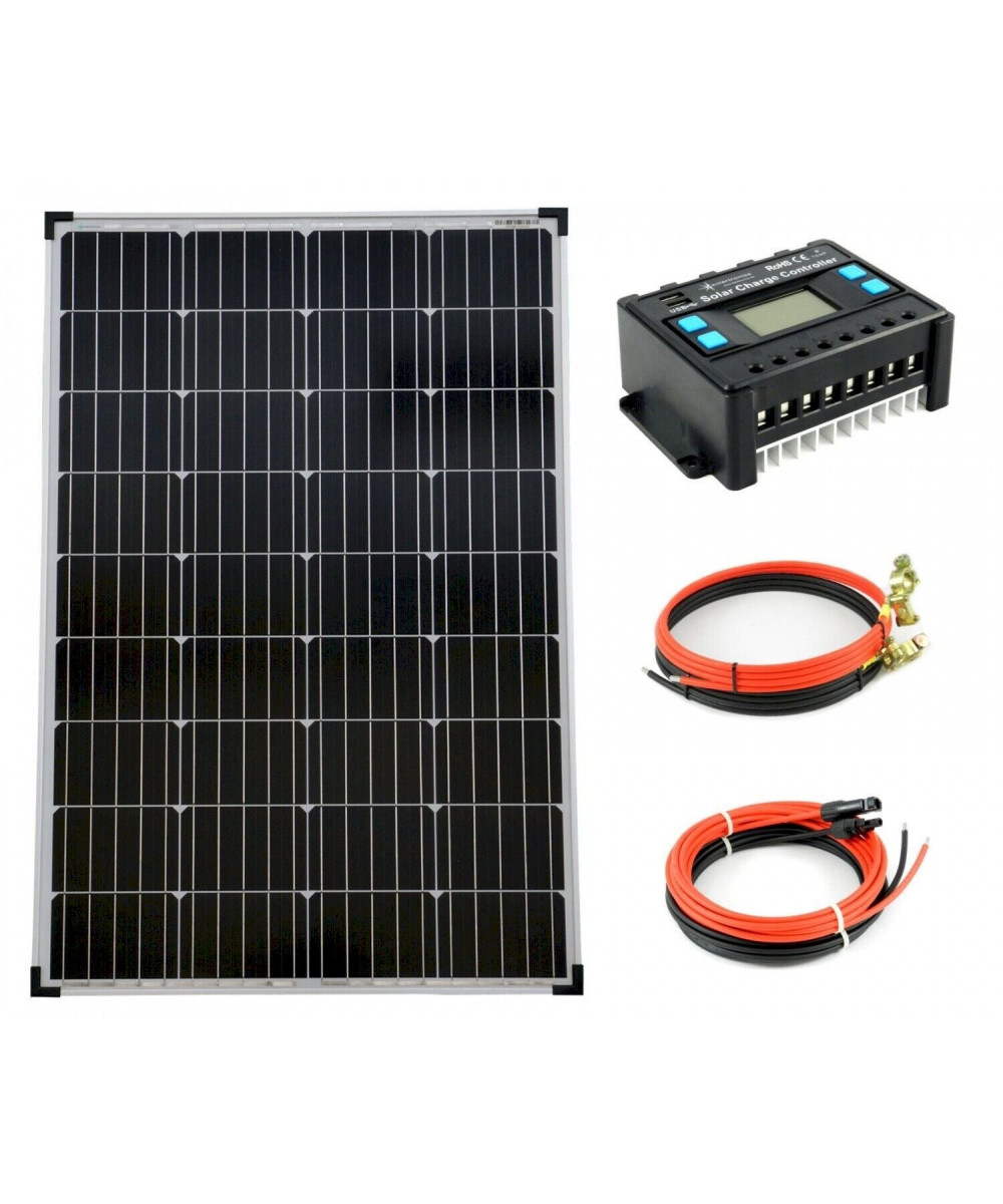 Solartonics Komplettset 1x100 Watt Monokristallin Solarmodul 5-Busbars 20A Laderegler 12V / 24V Kabel