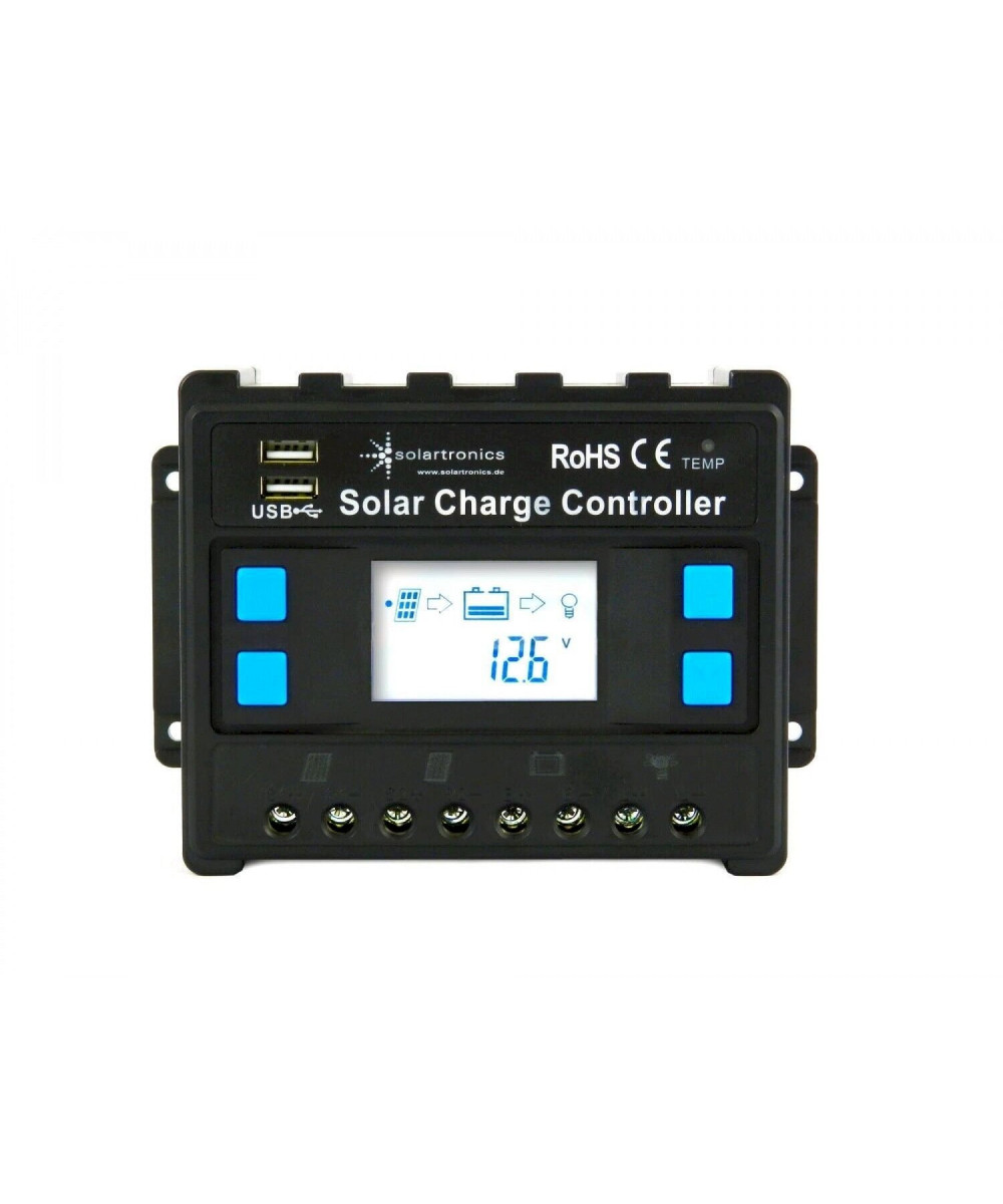 Der Laderegler wird zwischen Solarmodul und Batterie geschalten und ist somit für die Steuerung des Ladevorgangs verantwortlich. So kann die Batterie, immer maximal geladen werden. Durch einen Mikroprozessor wird die Batterie schonend geladen und garantiert somit Ihrer Batterie eine lange Lebensdauer.