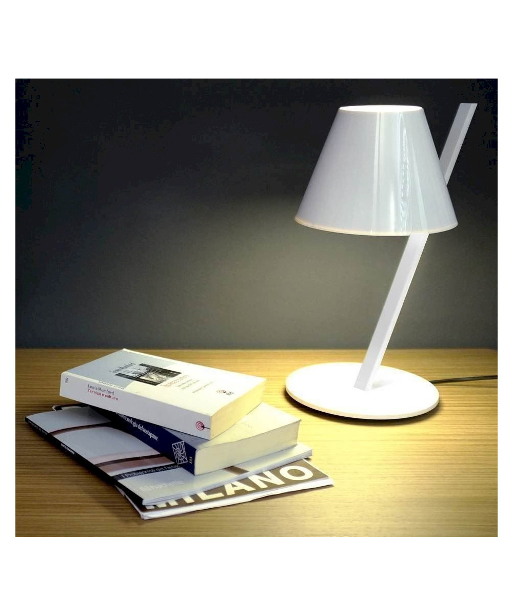 Lampe de table'La Petit' LED Couleur : blanc brillant MATERIAUX : Base et tige en aluminium avec finition peinte ; abat-jour en technopolymère moulé par injection ; écran en technopolymère diffusant moulé par injection.