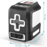 - Le laser à lignes permet de représenter 1 ligne verticale et 1 ligne horizontale. La précision de mesure est de +-1 mm/10 m.