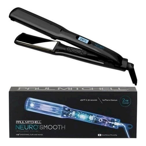Der Paul Mitchell Neuro Smooth ist ein leistungsstarkes Glätteisen, mit welchem Sie seidenglatte Looks, sowie Flips und Wellen kreieren können. Es besitzt IsoTherm Platten aus Titan, welche innerhalb von Sekunden eine perfekte und gleichmäßige Wärme erreichen. Es ermöglicht somit ein müheloses gleiten durchs Haar in nur einem Arbeitsschritt.