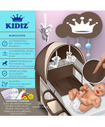 Le lit d'appoint KIDIZ est un lit de voyage et un parc en même temps. Il est idéal pour les enfants de 0 à 3 ans avec un poids allant jusqu'à 15 kg. Le matelas de qualité supérieure a une surface de couchage confortable et est composé d'une mousse élastique et résistante avec un revêtement en polyester qui favorise le sommeil paisible de l'enfant. Les parois latérales stables sont fabriquées en filet perméable à l'air et assurent ainsi une parfaite circulation de l'air.